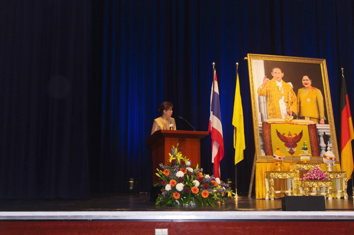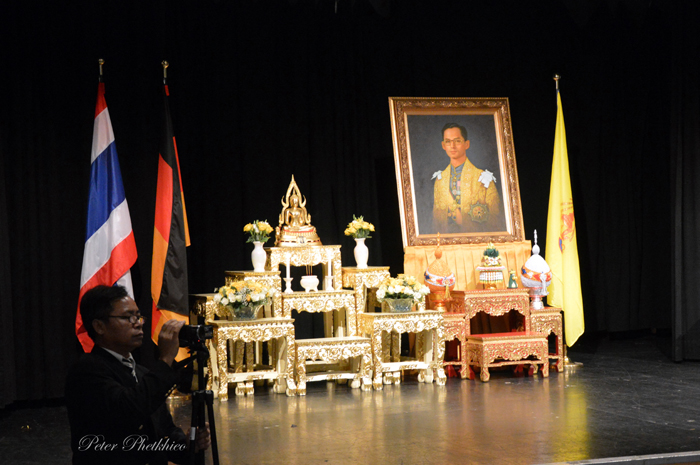 I.E. Frau Nongnuth Phetcharatana, thailändische Botschafterin in Deutschland, und Herr Fuchs hielten Reden, um die Entschlossenheit und Hingabe von Seiner Majestät, die Lebensbedingungen von Thailändern durch zahlreiche Entwicklungsprojekte zu verbessern, zu würdigen. Beim Empfang wurde Musik aus einer Reihe königlicher Kompositionen aufgeführt. Desweiteren wurden thailändische Obstschnitzerei und das Flechten thailändischer Blumengirlanden dargeboten. Ebenso wurde bei der Veranstaltung excellentes thailändisches Essen am Buffet serviert und an verschiedenen Essensstationen frisch zubereitet.