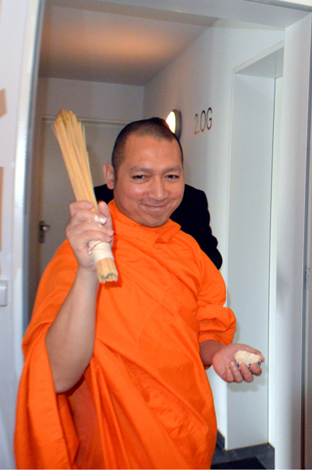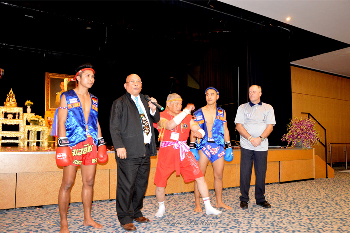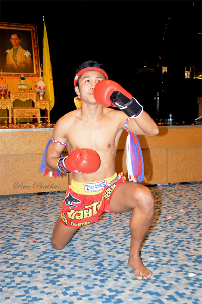 Großen Anteil am Gelingen dieser Feier hatte neben der Rak Muang Thai Schule auch die Ruam Jai Thai Schule aus Berlin Reinickendorf, für die Thai-Boxer Sven Markulla mit netter Gattin Jum verantwortlich zeichnet. Nicht nur ihre Muay Thai Kämpfe vom Muaythai Gym Subyen und ein bekannter Adjan aus Thailand, alles moderiert von Ching Chong, sondern auch die Tänze und Lieder bereicherten diesen würdevollen Abend.