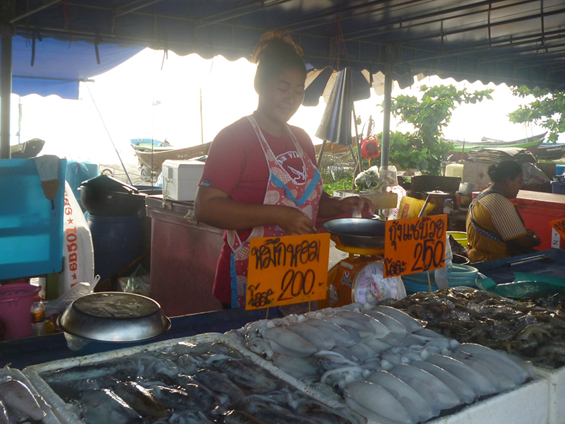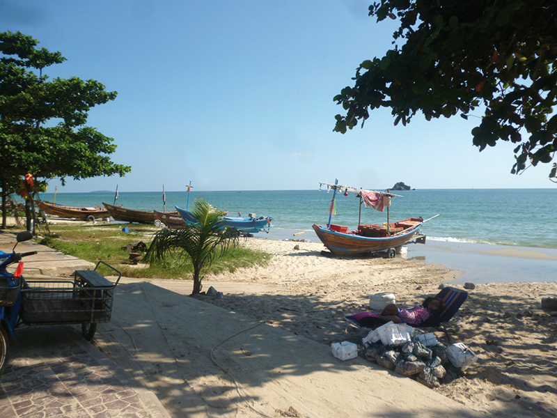 Bei jeder Thailandreisen fahre ich mit meiner Familie mindestens einmal ans Meer. So auch dieses Mal. Wir wollten die Gegend um Laem Mae Phim an der Nordküste des Golfs von Thailand erkunden. Von unserem Dorf im Isaan sind es etwa 350 Kilometer bis dorthin. Eigentlich waren wir schon fast überall, an dieser Küste aber dort noch nicht. Den Tipp bekam ich von meinem Freund Olaf.