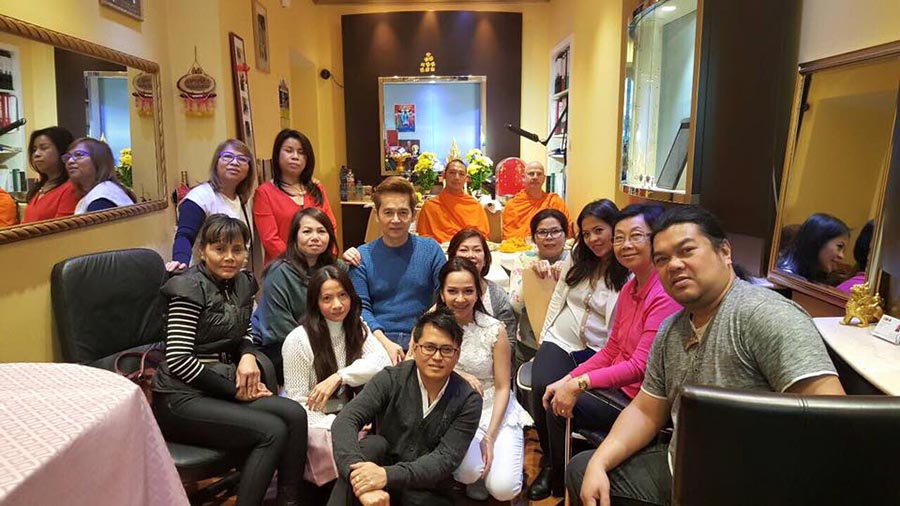 Dieser Wai gegenüber Mönchen ist ein Zeichen von großer Hingabe, hohem Respekt und religiöser Verehrung. Dabei werden die Hände aneinander gelegt, die Fingerspitzen erreichen die Höhe der Stirn oder Kopfende, der Kopf und Oberkörper werden nach unten gebeugt. Den Mönchen wird die höchste Verehrung entgegengebracht, und auch Ihre Majestäten, der König und die Königin, begrüßen Mönche mit hohem Respekt und hoher religiöser Verehrung.