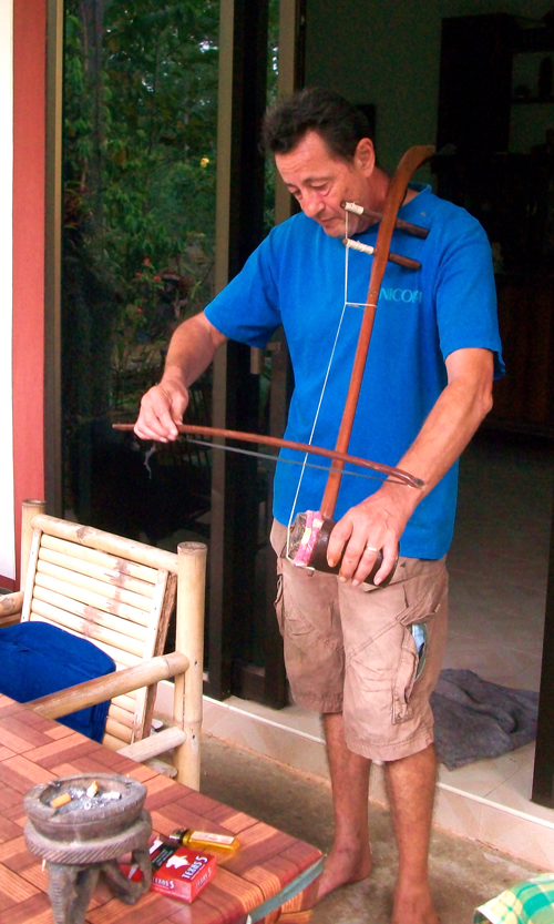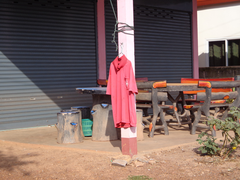 Bei den Fahrten über die Dörfer der Umgebung fielen mir zahlreiche rote T-Shirts auf, die an den Zäunen vor den Häusern hingen, teilweise verwittert. Ich dachte schon, na klar, Isaan, das ist Thaksin Gegend, also die der Red-Shirts. Aber Pustekuchen. Es war etwas ganz anderes: In einem Dorf gab es einmal eine Frau, die nahm einer anderen Frau den Mann weg, später wurde sie zur Hexe erklärt wegen ihrer vermeintlichen heimlichen Kräfte. Als sie dann starb, fürchteten die Einheimischen ihre Magie, dass sie damit ihnen die Männer entführt. Zum Schmutz nun, dass dies nicht passiert, wurden die roten Shirts als Abwehr aufgehängt, denn die Farbe Rot würde sie abschrecken. Also nix Thaksin, sondern Hexen-Aberglaube. So ist das im Nordosten von Thailand. Alles etwas anders, aber schön. Mathias Heinrich
