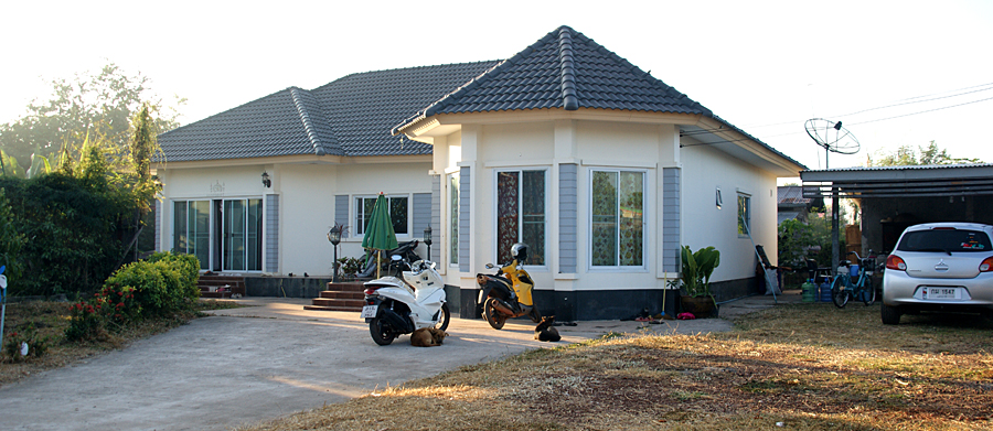 Ich habe mit dem Motorroller nach und nach die Umgebung und die einzelnen Ortschaften erkundigt, um mich zu orientieren, wo ich eigentlich bin und wie sie Strassen verlaufen. Mit vielen wildfremden Thai-Leuten hatte ich kurze Begegnungen und kleine Gespräche, soweit es mein Thai hergibt. Niemals war es schlecht, immer war es ein kleines Erlebnis für beide Seiten. Ich hatte niemals Angst, obwohl die Familie Angst um mich hatte bei meinen selbständigen Ausflügen, dass mich einer beraubt oder eine mit dem bösen Blick wegschnappen könnte. Ist aber nicht passiert.
