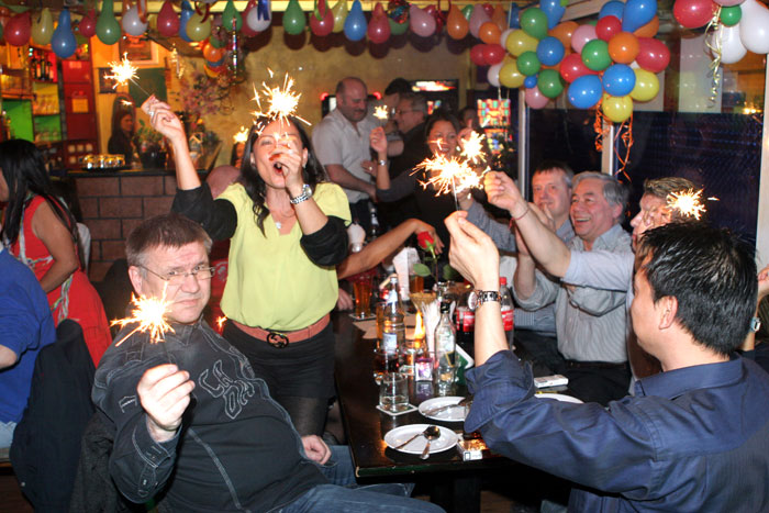 Nun, aber, auf geht es. Dia vom ehemaligen Bangkok-Café hat sich riesig gefreut, als sie unerwarteten Besuch in der Sonnenallee bekam. Alle fragten sich, wo ist denn Dia nur abgeblieben. Einige meinten, sie arbeitet bestimmt in einer Thai-Massage. Doch weit gefehlt, Dia geht es gut. Sie ist schlank und rank und hat gute Laune und einen ebensolchen Job in einem kleinen Automaten-Casino in Neukölln. Mehr darf ich nicht verraten - ausser, dass sie was in der Pipeline hat und vielleicht mal wieder eine Thai-Kneipe aufmacht. Wäre ja nötig für die Farang-Thai-Teffen am Vorabend oder Spätnachmittag. Immer nur nachts geht gar nicht. Es soll dann aber eine Überraschung werden. Bis dahin kann man Dia öfter bei Kria und Walter in Reinickendorf treffen.