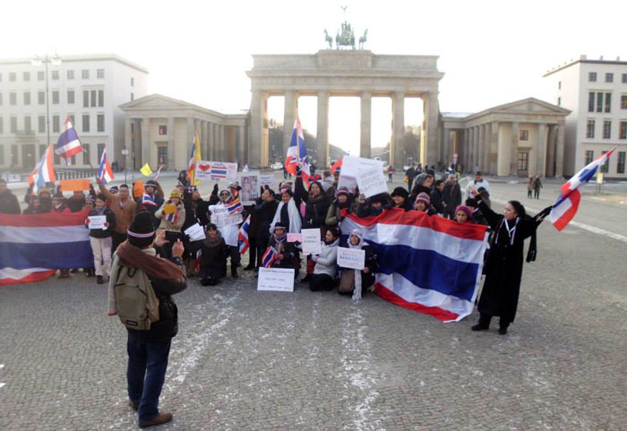 Berliner Thais demonstrierten vor dem Brandenburger Tor.