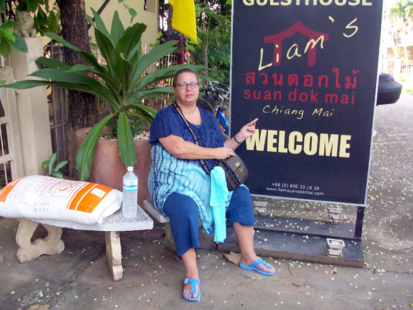 Chiang Mai, du Perle des Nordens, wir sind da. Der einstündige Flug vom Flughafen Don Muang war bis auf eine Verspätung problemlos. Wir haben uns für die Nok Air entschieden, weil mehr Flüge angeboten werden. Die Planung war damit einfacher. Der Preis spielte natürlich auch eine Rolle. Das bestellte Taxi ähnelt den Baht-Taxis in Pattaya. Die Farbe der rollenden Fahrzeuge ist rot. Die Preise, im Gegensatz zu Pattaya, absolut o.k., fast schon zu preiswert. Nach gut 20 Minuten Fahrt stehen wir vor dem schmiedeeisernen Tor des Liam's Suan Dok Mai.