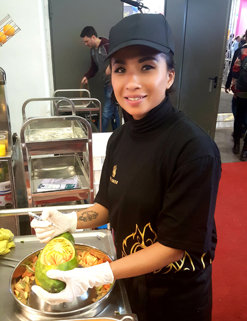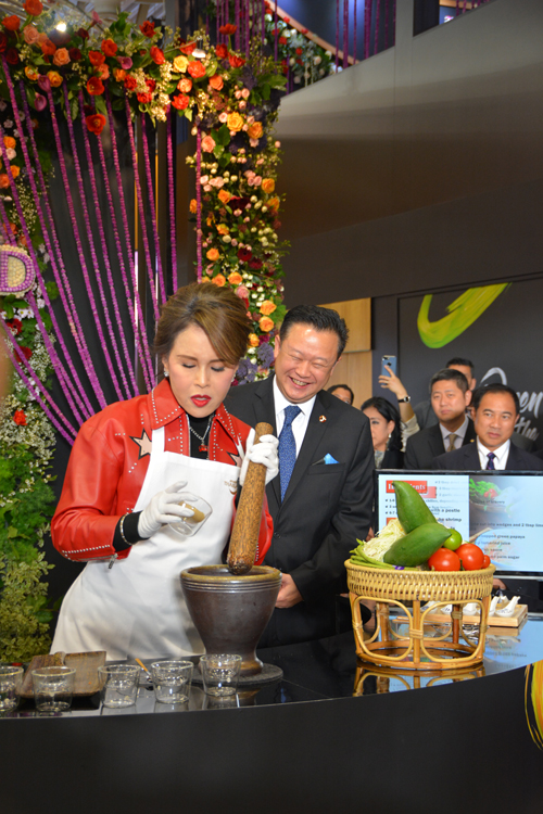 Am 8. März kam Ihre Königliche Hoheit Prinzessin Ubolratana Rajakanya, um mit dem neuen Minister, dem thailändischen Botschafter und thailändischen Ehrengästen thailändische Aussteller zu besuchen. So die THAI, TAT, Bangkok Airways, den Flughafen-Betreiber AOT und weitere. Auch machte sie Promotion für ihr eigenes Projekt namens To Be Number One. Und dann folgte etwas ganz Besonderes: Die Prinzessin live als Köchin des viel geliebten Papaya-Salates Som Tam.