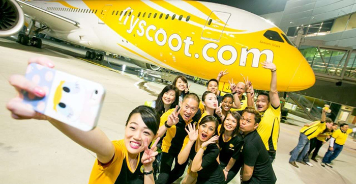 Im Asien-Pazifik-Bereich setzt Scoot ausschließlich Airbus A320, Boeing 787-8 mit 335 Sitzen und Boeing 787-9 mit 375 Sitzen ein. Die Gesamt Flottenstärke soll innerhalb der nächsten fünf Jahre verdoppelt werden, schon bis 2019 sind 20 weitere Dreamliner geplant.