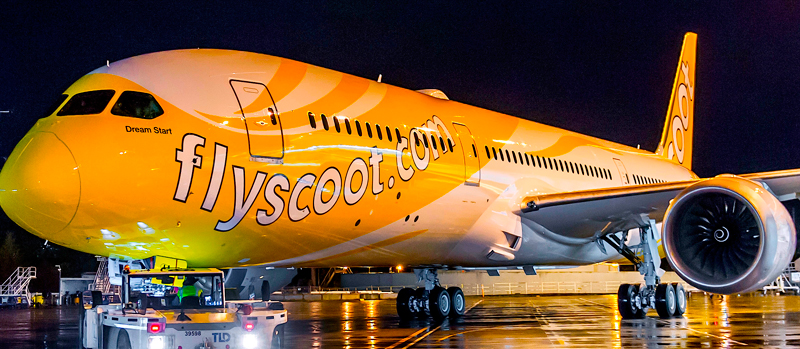 Die Billigtochter der Singapore Airlines treibt ihre Langstrecken-Expansion zügig voran. Als erste Fluggesellschaft der Welt betreibt Scoot eine Einheitsflotte aus Boeing 787 in unterschiedlichen Konfigurationen für den Langstrecken-und Mittelstreckenbereich. Für die Kurzstrecke wird nur Airbus A320 Fluggerät eingesetzt und sukzessive auf noch sparsamere Airbus 320neo umgestellt.