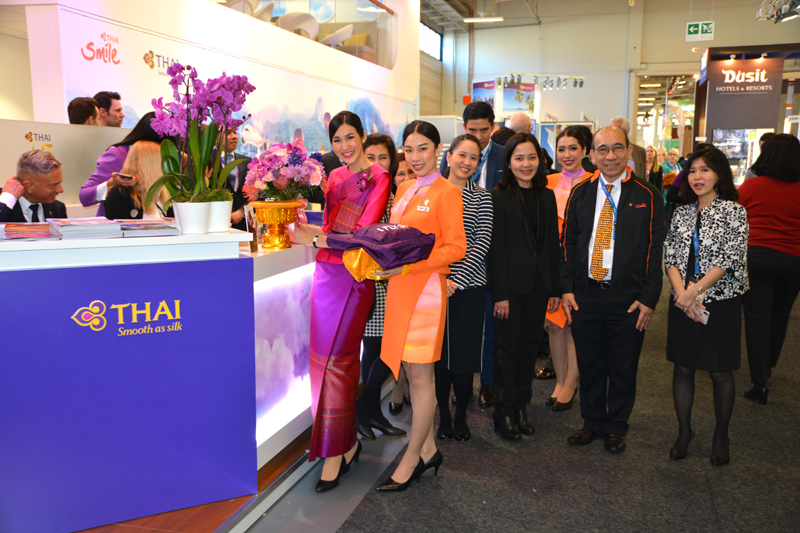 Am gemeinsamen Stand von Thai Airways & Smile treffe ich bekannte Gesichter, so meinen Freund Pricha. Ich schleiche mich von hinten ran und schnappe ihn - wir haben beide Tränen in den Augen. Die Stewardessen stutzen und sind verblüfft. Da kommt ein Farang mit Kamera schnappt sich den Chief of Commercial Professional (Europa-Chef der THAI, Khun Pricha Nawongs). Von ihm hier erfahre ich Neues, aber das darf ich noch nicht bekannt geben, folgt aber.