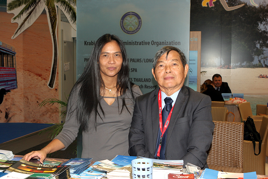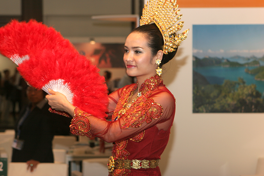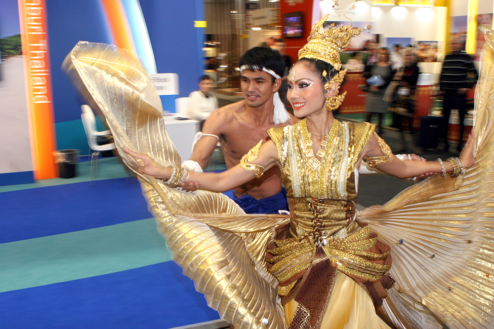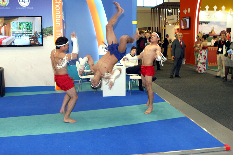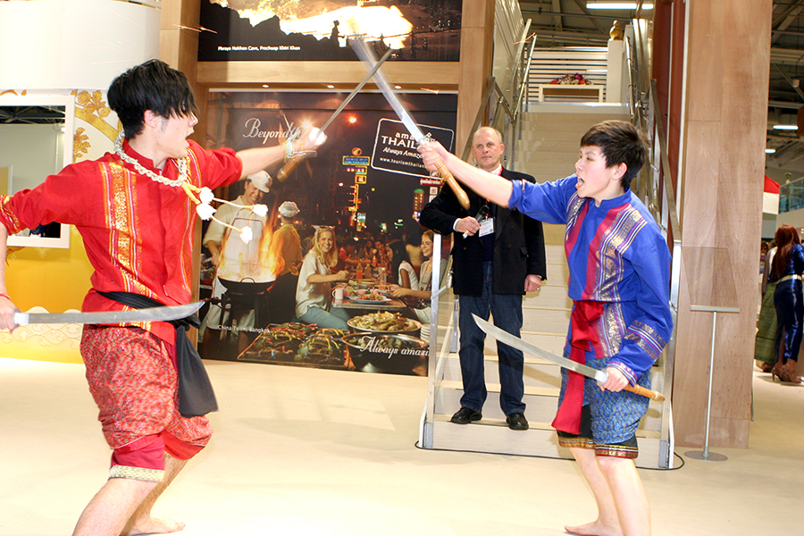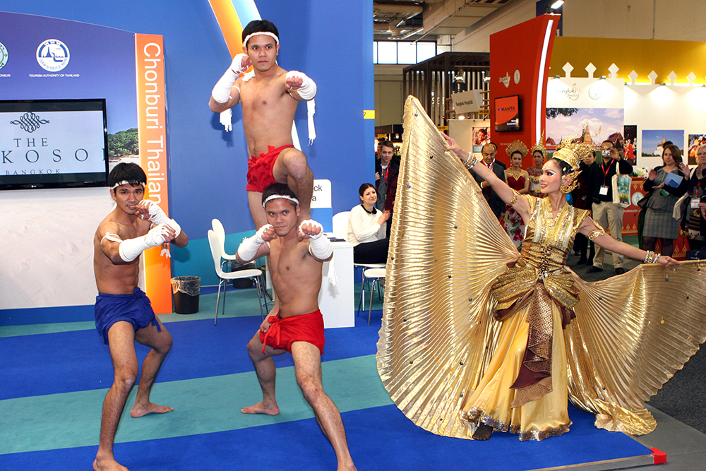 Da erstmalig Reisen am Stand direkt gebucht werden konnten, nutzte laut einer Umfrage jeder Dritte die Gelegenheit, um zu buchen oder zu reservieren. Das diesjährige Partnerland Indonesien reiste mit mehr als 300 Tänzern, Musikern und Künstler aus den verschiedenen Landesteilen an und sorgte für entsprechendes Aufsehen. Einer der Mittelpunkte war der Klimawandel, der besonders stark von der jüngeren Generation reklamiert wurde. Der Stand Thailands war wie immer in der Halle 26 B zu finden. Der einstöckige Hauptaufbau ist um ein paar Meter versetzt worden. Unverändert von Standort und Größe waren die Aussteller von Thai Airways, der Phuket-Krabi-Pattaya- und Khao Lak Stände. Die Dusit Thani Hotelkette hat sich von hier zurückgezogen. Sie war in der Halle 9 Stand 114 zu finden. Der Grund dafür wurde mit der Schließung der Büros in Deutschland angegeben. Die Zentrale hat nun in London eine neue Heimat gefunden. Neben den vielen Hotelmanagern war es eine besondere Freude, Michael Weber die Hand zu drücken. Sein Top Resort auf der Insel Koh Chang ist immer eine Reise wert. Gleiches gilt für René Pisters, dem Betreiber des Thai Garden Resorts in Pattaya. Am Pattaya Stand selbst konnten die Besucher täglich die Vorführungen dreier Muay Thai Kämpfer bewundern, begleitet von einer charmanten Tänzerin. Die Drei sind übrigens ehemalige Schüler von Prof. Dr. Phosawat Saengsawan (siehe dazu den Bericht auf Seite 23).