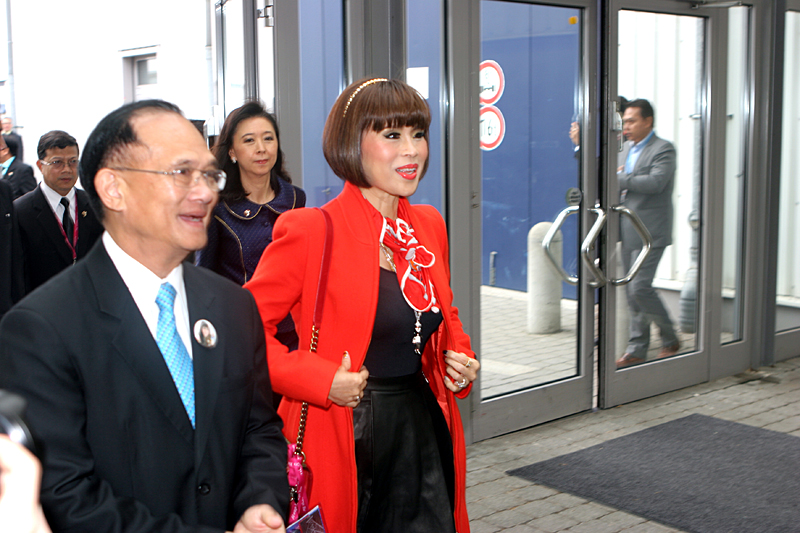 Das Highlight der Messe am Thaistand war der Besuch IKH Prinzessin Ubol Ratana. Nach dem Interview im oberen Stockwerk des Messestandes erfolgte die Vergabe dreier Green Awards an 4 Empfangsberechtigte. Umringt von einer ungezählten Zuschauermenge trat IKH den obligatorischen Rundgang an. Happy waren diejenigen, die mit der Prinzessin ein paar Worte wechseln durften. Für die Security war es nicht immer einfach, einen kleinen Sicherheitsabstand, einen Bewegungsfreiraum zu schaffen. Schließlich hegt jeder den Wunsch, dem Königshaus so nah wie möglich zu sein. Aber wie immer ist auch das gut gelungen. Nach dem Rundgang war der königliche Besuch der Messe beendet.