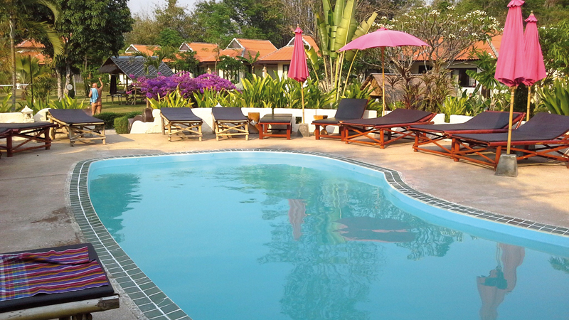 12 Bungalows bedeutet, daß sich maximal 24 Gäste im Resort aufhalten, dazu der eine oder andere Tagesgast aus Chiang Mai. Es ist wirklich ein Ort der Ruhe und Entspannung, wer Nightlife sucht, ist hier sicher nicht richtig. Allerdings darf nicht verschwiegen werden, daß die Tour vom Resort nach Chiang Mai nicht einfach ist. Es gibt weder Bus noch Taxi dorthin.