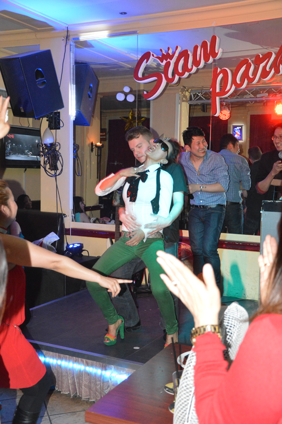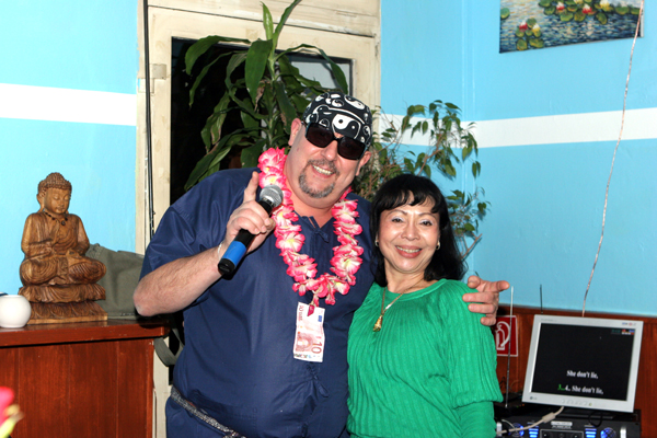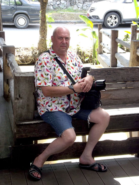 Zwei Dinge sind mir stets vor Augen: Wenn Helmut (im ganz unaufälligen Hawaii-Hemd) ins damalige R.C.A. von Toi kam, einem angesagten Thai-Musik-Café vor Jahren, dann war er flugs auf der Bühne und trällerte (eines seiner Lieblingsworte) englische Karaoke-Songs ins Mikro wie Elvis oder Frank Sinatra. Macht ja auch nicht jeder Fotograf. Das Zweite ist etwas subtiler: Sehr schöne und exclusive Fotos von der thailändischen Prinzessin Ubol Ratana stammen aus der Kamera von Helmut. Sehr nah und sehr menschlich. In den letzten Jahren war Ihre Königliche Hoheit immer auf der ITB in Berlin, um zu schauen, Thailand zu repräsentieren und um Karaoke zu singen. Macht ja auch nicht jede Prinzessin. Im Jahr 2013 fragte sie sogar nach dem Namen des grossgewachsenen freundlichen Fotografen-Farang. Immerhin. Und im Jahr 2014, also vor kurzem, hat sie ihm, und nur ihm, sogar königlich zugewunken! Ich denke, eine grosse Ehre. Helmut hat sich sehr darüber gefreut. Und Du hast es Dir verdient! Mehr thailändische Ehrung ist wirklich nicht zu erhalten.
