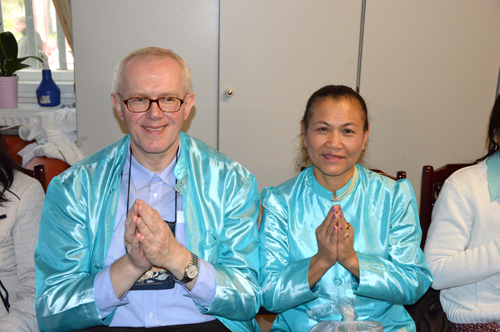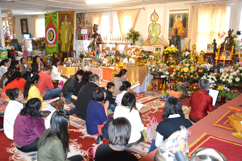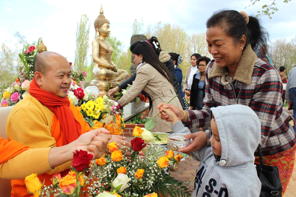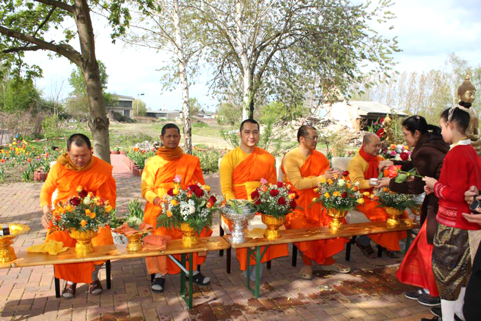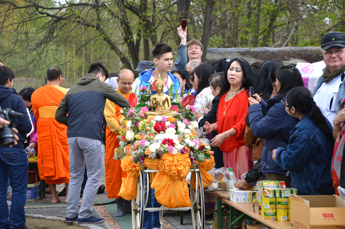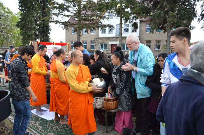 In Berlin-Pankow nun, auf dem neuen Gelände des Wat Buddhaviharas begann gegen 10:30 Uhr die Zeremonie zum Gedenken an Buddha, während dieser wurden zahlreiche Spenden übergeben. Nach dem Mittagsmahl der Mönche erläuterten diese die Lehre Buddhas, und der "Ton Phaa Paa" (Geldbaum) wurde überreicht. Den Segen erhielten alle Anwesenden und erfreuten sich bei allerlei schmackhaften Speisen und den Darbietungen des Programms. Auch zahlreiche Stände mit allerlei Nützlichem und Essbarem sorgten dafür, dass Songkran in Berlin zu einem kleinen Volksfest wurde. Peter Phetkhieo