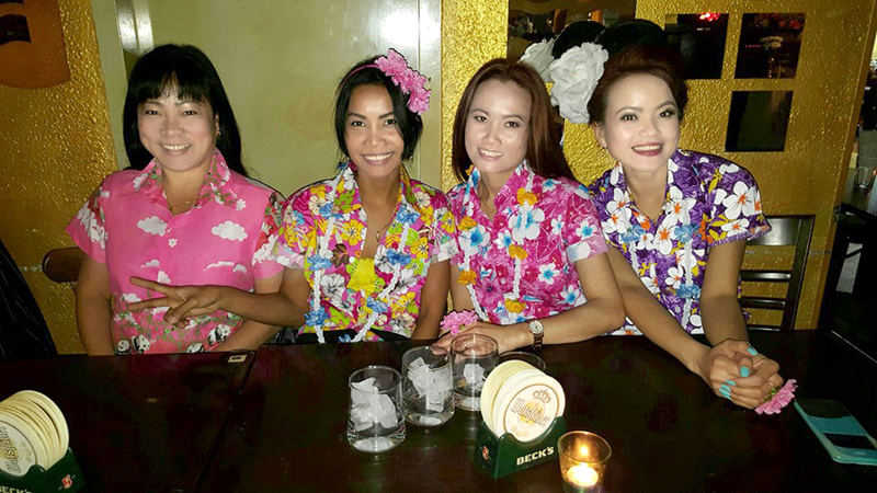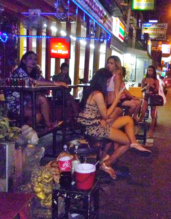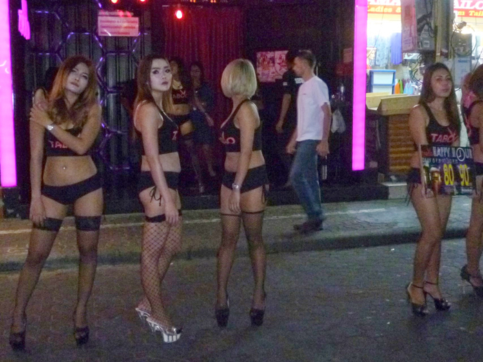 Die schönen Mädchen saßen oder tanzten vor dem Restaurant, in dem sie angestellt waren. Sie forderten Farangs auf, zu ihnen zu kommen. Eine rief ihm im Vorbeifahren zu: "Hallo Mister, come to me. I love you for short time".
