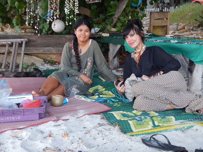 Um 6 Uhr am Morgen erwachte ich von Geräuschen, die aus dem Badezimmer an mein Ohr drangen. Buraya ist eine Frühaufsteherin und duschte bereits. Nach einem 7 Eleven Frühstück machten wir uns gemeinsam auf den Weg. Bu wollte ich bis zu einer Freundin von ihr mitnehmen, die damals am Strand selbstgefertigte Ketten und Armbänder verkauft hatte. Wir wussten nicht ob sie ihr Business noch hatte. Nong Fa wurde auf dieser Insel geboren und hatte sie außer zum Einkaufen nach Ban Phe noch nie verlassen. Die Chance war also nicht schlecht, dass wir sie finden würden.