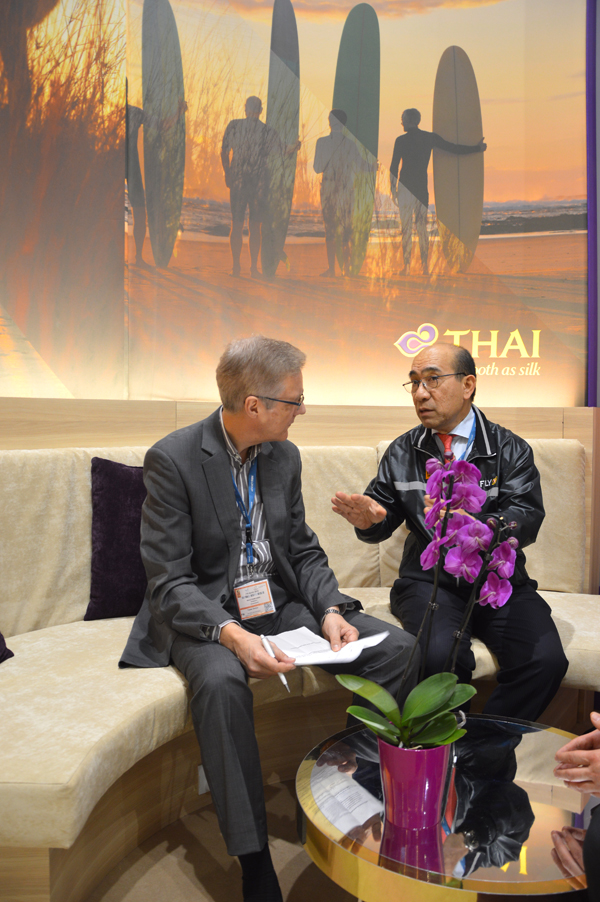 Khun Pricha: Der Flugmarkt in Deutschland mit seinen rund 80 Millionen Einwohnern plus den vielen Nachbarländern ist so groß, dass es mir keinerlei Sorgen macht, unsere rund 1.200 Flugplätze täglich zu füllen. Nur Flug-Kunden, die es wünschen ohne Gepäck und jeglichen Inklusiv-Service billigst nach Thailand zu reisen, werden so fliegen. Auch bei den Hotels gibt es ja verschiedene 1 bis 5 Sterne Kategorie Angebote und ein jeder kann für sich das Richtige oder auch Nötige daraus auswählen. Im asiatischen Kurz- und Mittelstreckenbereich, also bis max. 4 Flugstunden, haben wir mit unserem Tochterunternehmen THAI SMILE Airways auf die dortigen Marktgegebenheiten reagiert.