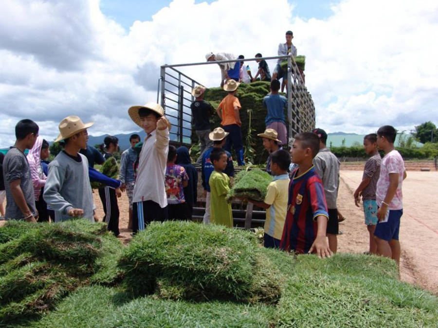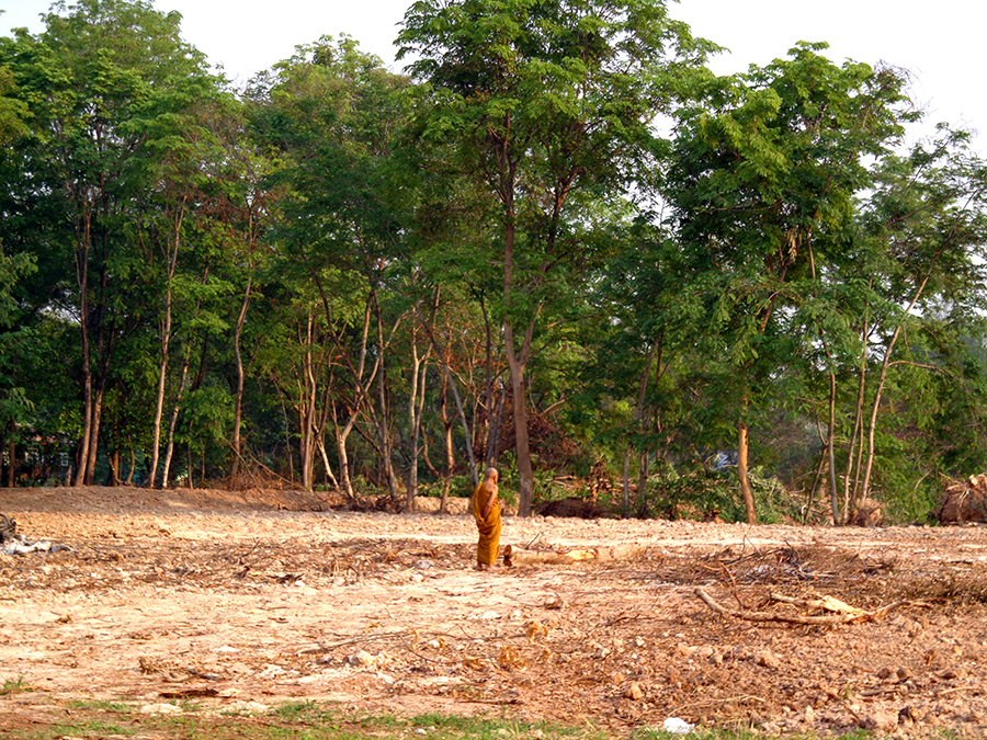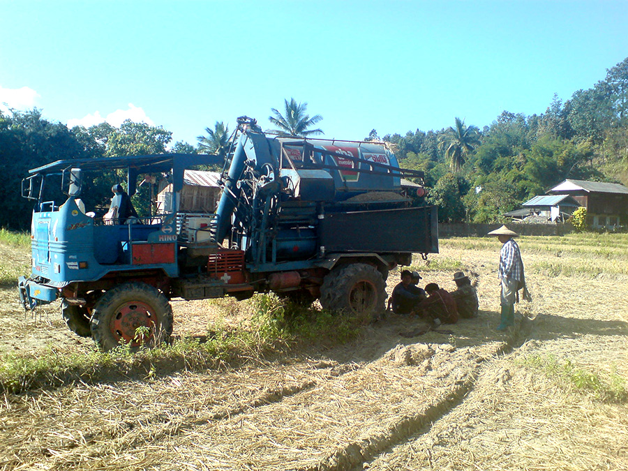 Hier waren Frauen und Männer bei der Arbeit. Mit Sicheln wurden reife Pflanzen geschnitten, dann in Garben zusammengebunden. Man gab ihm einen Strohhut und forderte ihn auf, Bündel aufzunehmen und an den Feldrand zu bringen. Dies tat er dann. Mit den anderen Leuten konnte er sich nicht unterhalten. Niemand weiter sprach Englisch. Wie Thailändisch hörte sich diese Sprache aber auch nicht an.