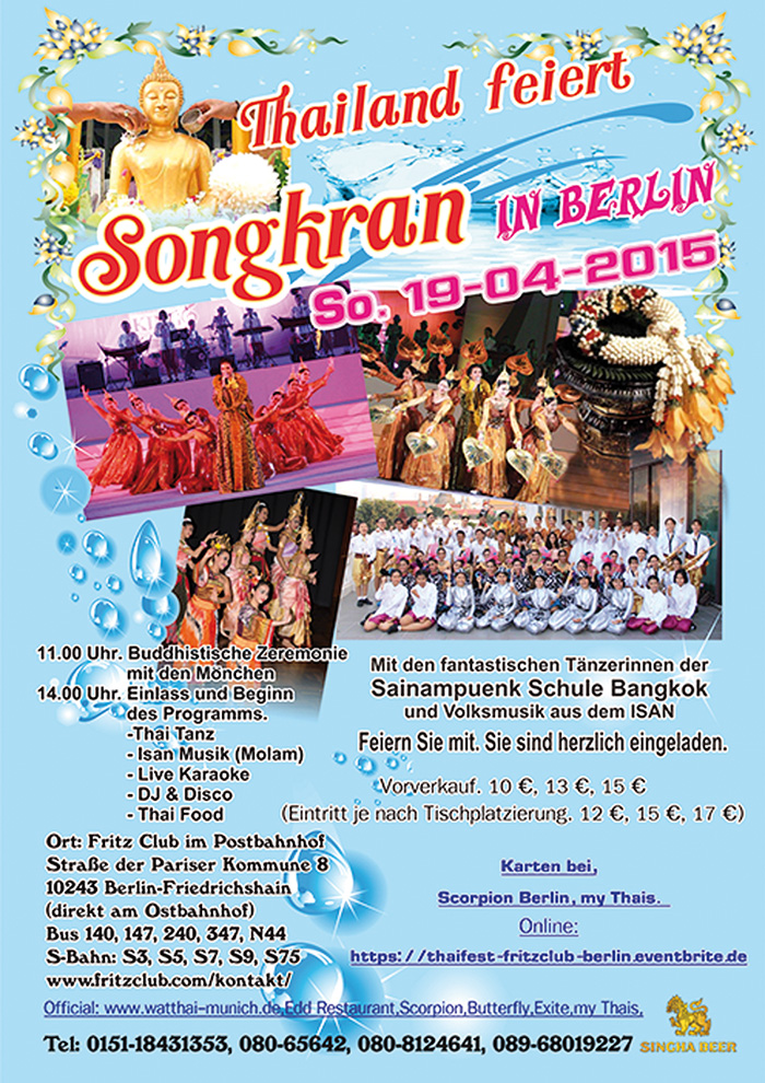 TAF Reisebüro stellt vor: Uzbekistan Airways Happy Birthday, Dimmy Bombe auf Koh Samui Edds Kolumne RA Bümlein informiert: Folgen der Scheidung (2) Franky Kuchenbecker: Farang und Lotusblüten Ching Chong/Herausgeber Verein Hoffnungsfunke Deutscher Hilfsverein Grosser Bericht: Meine erste Thailand-Reise Songkran in Berlin It's Thailand Kleinanzeigen News aus Thailand Solche Sachen Karneval der Kulturen Bootsverkehr in Bangkok Frühgeschichte Thailands: Teil 3: Suvarnabhumi Aus den Wats |