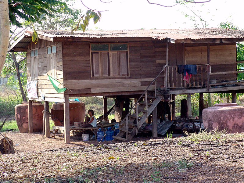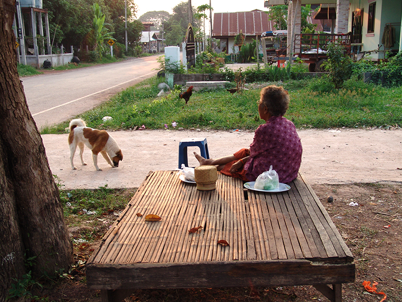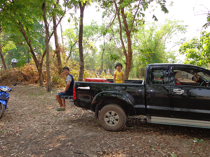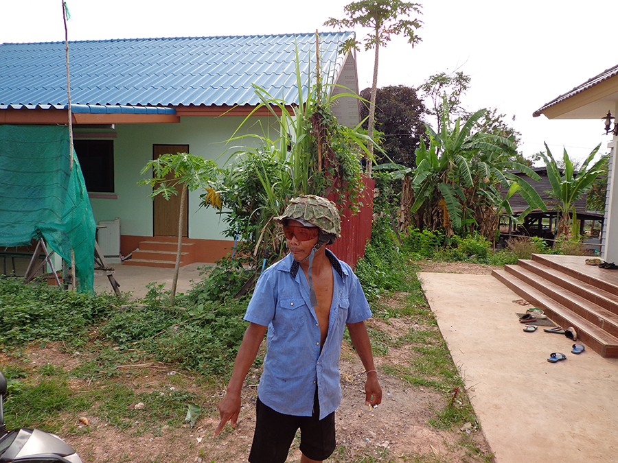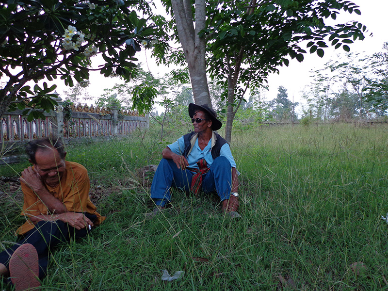 Ein Mann lag in einer schattenspendenden, offenen Hütte und trank Reiswhisky. Er gab zu verstehen, dass er leider nicht mitarbeiten könne. Er leide unter Kreuzschmerzen und der Whisky sei seine Medizin.