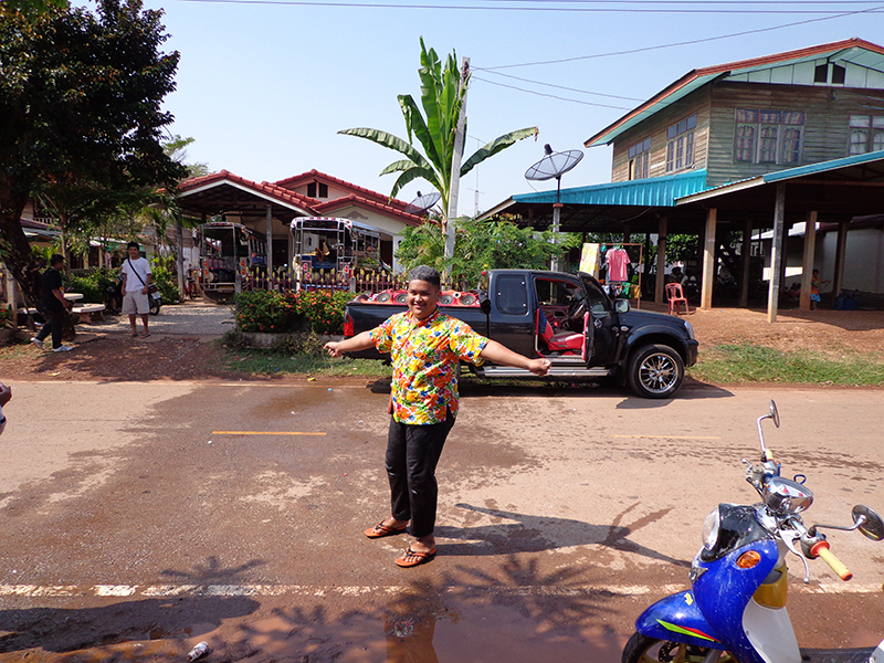 Die Reise ging über einen hohen Gebirgspass. Dort oben gab es keine Tankstellen. Es wurde kalt und begann zu regnen. Fredy war schlecht vorbereitet, kein Regencape und zu wenig Benzin im Tank. Glücklicherweise ging es hinter dem Pass fast nur noch bergab. Er zog einen Pullover über und rollte, ohne den Motor zu starten, ca. 30 Kilometer ins Tal hinunter. So schaffte er es bis zur nächsten Tankstelle. Hier war das Wetter wieder gut und er konnte munter bis Chiang Rai weiterreisen. Dort übernachtete er in einer Pension.