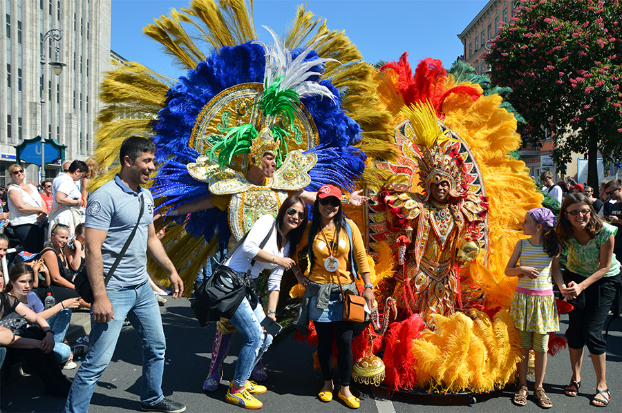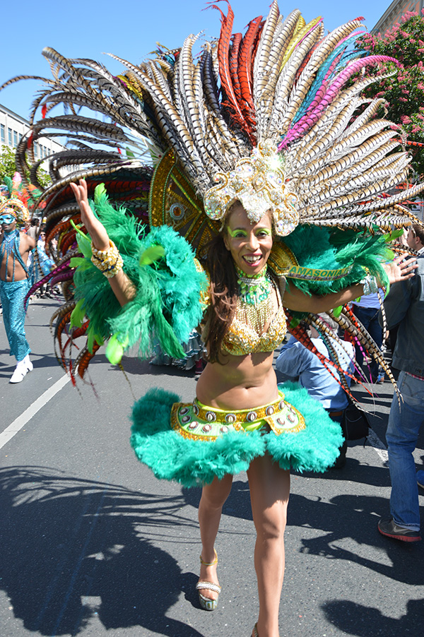 Seit 1996 an jedem Pfingstwochenende, gibt es den Karneval der Kulturen in der Hauptstadt. Fantasievoll geschmückte Festwagen, atemberaubende Kostüme und mehr als eine Million Feierwütige ziehen Hüfte schwingend mit den 60 Tanz- und Musikgruppen durch die Straßen von Neukölln & Kreuzberg. Wie auch in den Jahren zuvor zeigte sich das Wetter von seiner besten Seite - strahlender Sonnenschein bei 24 Grad - was will man mehr. Unzählige Menschen suchten sich die besten Plätze am Straßenrand entlang der etwa 3,5 Kilometer langen Route um dem bunten und lauten Treiben zuzusehen. Partylaune auf der ganzen Strecke des Umzuges, aus jedem Geschäft dröhnte laute Musik, Spätkauf Läden wurden zur Bar, jeder Imbiss wurde zum Biergarten Restaurant.