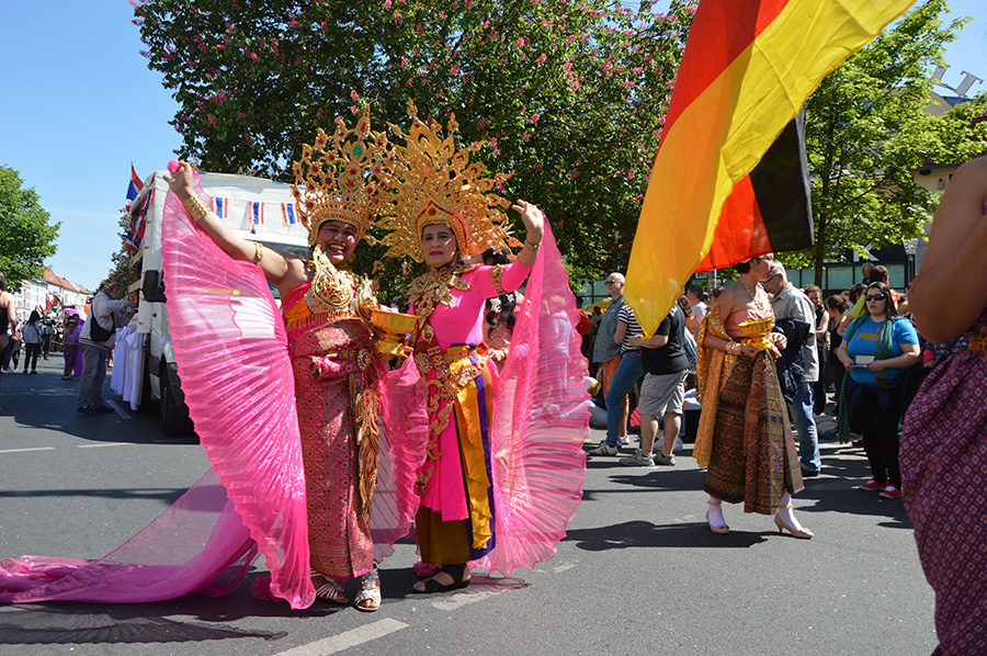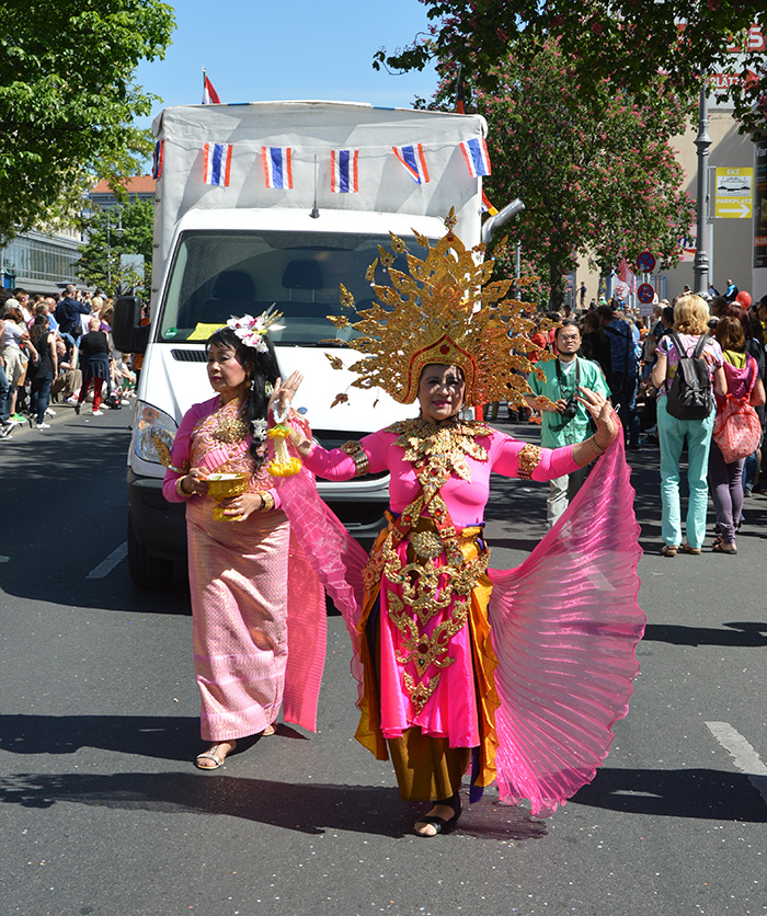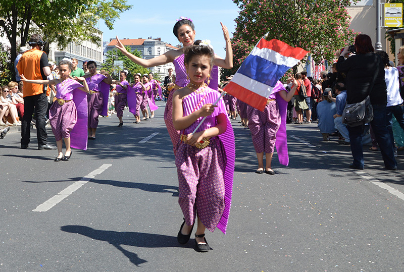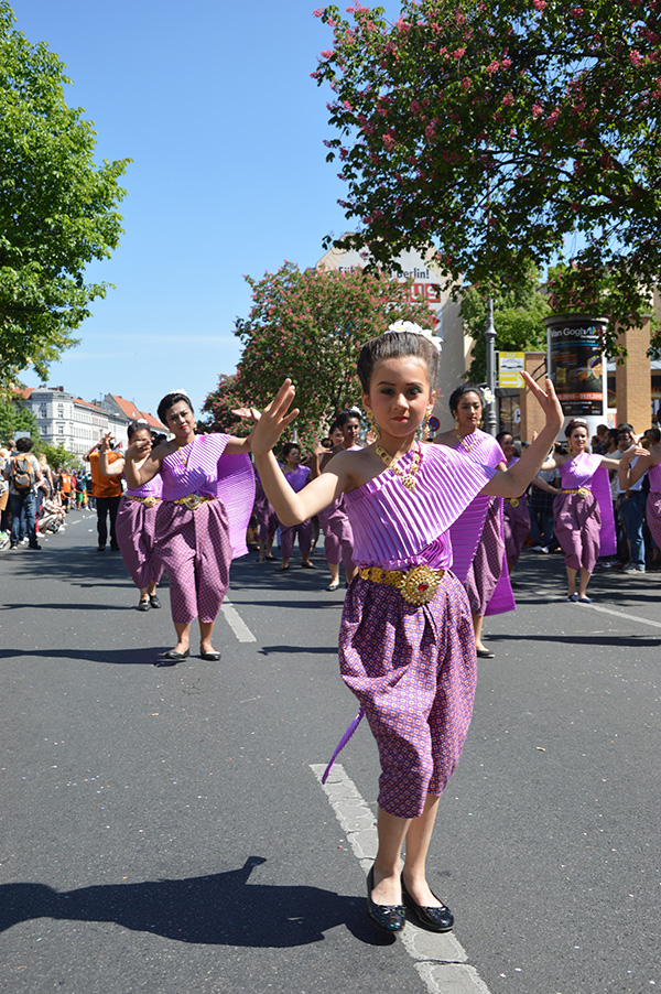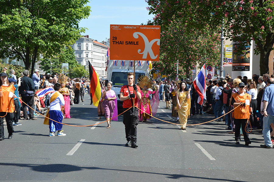 Berlins Integrationssenatorin Dilek Kolat (SPD) eröffnete den diesjährigen Karneval der Kulturen. Die deutsch-brasilianische Gruppe Sapucaiu No Samba zeigte eine kleine Kostprobe ihres Könnens am Hermannplatz und führte mit Startnummer 1 die gesamte Parade an, die über die Hasenheide, Gneisenau- und Yorckstraße bis zur Möckernstraße führte. Thailand war dieses Jahr Startnummer 29 und leider nicht so stark vertreten wie in den Jahren zuvor. Ich vermisste die aufwendigen prächtigen Kostüme sowie all die kleinen Tanzgruppen unseres geliebten Thailands. Hoffen wir aufs nächste Jahr... allen anderen hier mal ein Danke für die Strapazen, die Ihr auf Euch nehmt - es ist wahrlich nicht leicht, bei Hitze, tanzend & singend vier Stunden mit lächelndem Gesicht im Schneckentempo durch die Straßen zu ziehen. Peter Phetkhieo