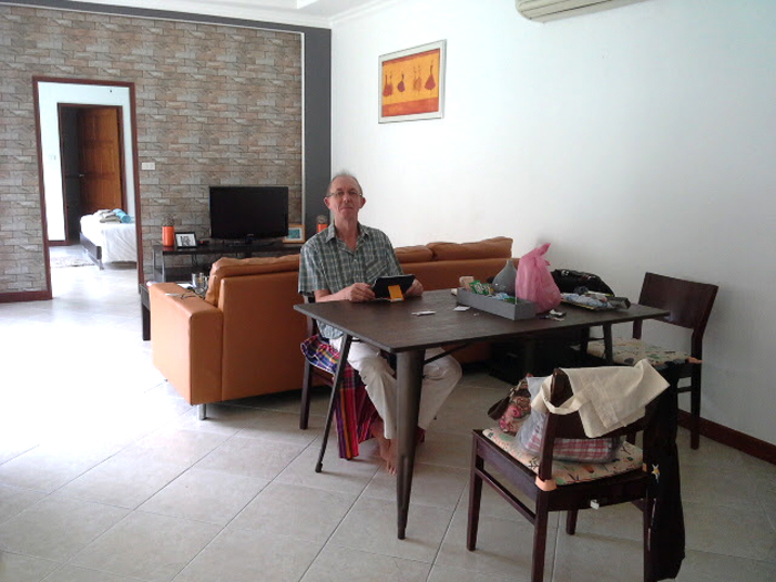 Unser Bungalow war mit einem grossen Wohnzimmer ausgestattet, Flachbildfernseher und Satellitenanlage, die Küche war komplett ausgerüstet mit allem Nötigen. Aber wer kocht schon selbst in Thailand? Frühstückskaffee, das sollte reichen. Die beiden Schlafzimmer hatten jeweils eigene Badezimmer, sogar eine Waschmaschine war vorhanden. Für zwei Personen gab es reichlich Platz, für eine Familie eigentlich ideal.