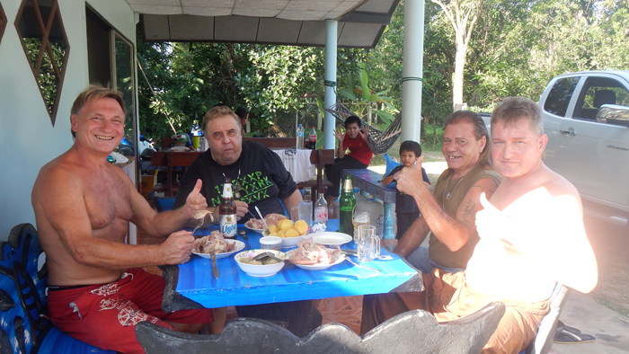 Die verbleibende Zeit unseres Urlaubs verbrachten wir auf unserem Anwesen im Isaan. Außer, dass ich für meine Farang-Freunde wieder ein Eisbeinessen ausgab und dass ein Sack Reis umgefallen ist, war dort aber nichts weiter Erwähnenswertes passiert.