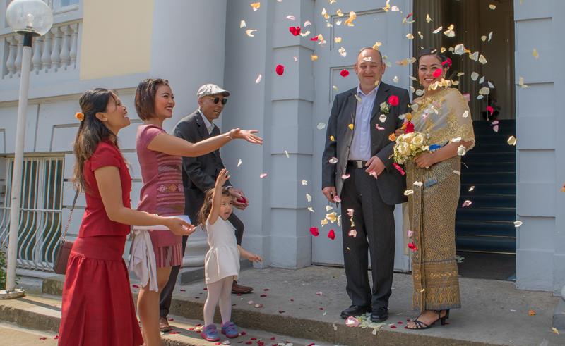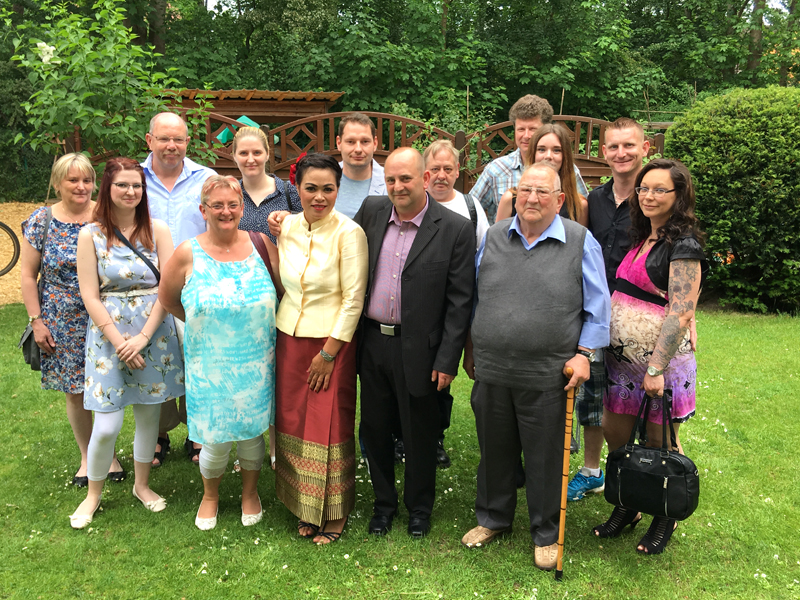 Am Ende des 3-Monats-Zeitraumes stellte Frank seine liebgewonnene Freundin auf die Probe, indem er ihr einen blumigen Heiratsantrag machte. Über alle Hindernisse und bürokratischen Formalitäten, die ein Paar (zumal mit Kindern) auf dem Weg zu einer Heirat zu überwinden hat, wollen wir in einem Erfahrungsbericht in einer der nächsten Ausgaben des FARANG berichten. Jedenfalls konnte im Mai 2017 im Lübecker Standesamt geheiratet werden und eine große Familie und ein wachsender Freundeskreis feierten ausgelassen.