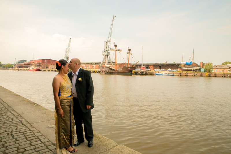 Während eines Urlaubs bei der Schwester Su in der Hansestadt Lübeck traf die Braut Aio (37) bereits vor mehreren Jahren auf ihren späteren Mann Frank (51), der Kunde im SU WANYO Thai Spa ihrer Schwester war. Er bot - zunächst aus reiner Hilfsbereitschaft - spontan an, ihr ein wenig die Gegend zu zeigen und den einen oder anderen Ausflug mit ihr zu machen. Schon nach dem 2. oder 3. Treffen wurde er galant und brachte Blumen oder kleine Aufmerksamkeiten mit. Doch Aio war für die Annäherungen zunächst nicht sehr aufgeschlossen, da sie zu Hause in Thailand 3 Kinder hat, um die sie sich nach einer länger zurückliegenden Trennung alleine kümmern muß.