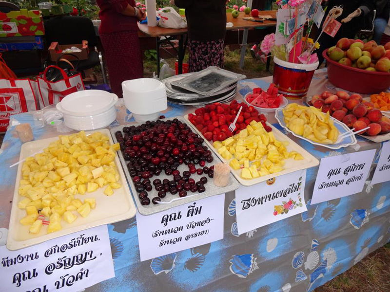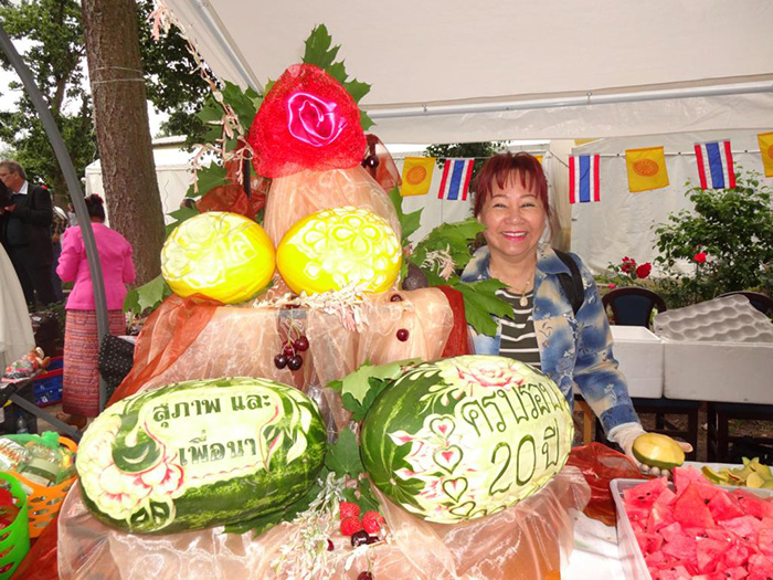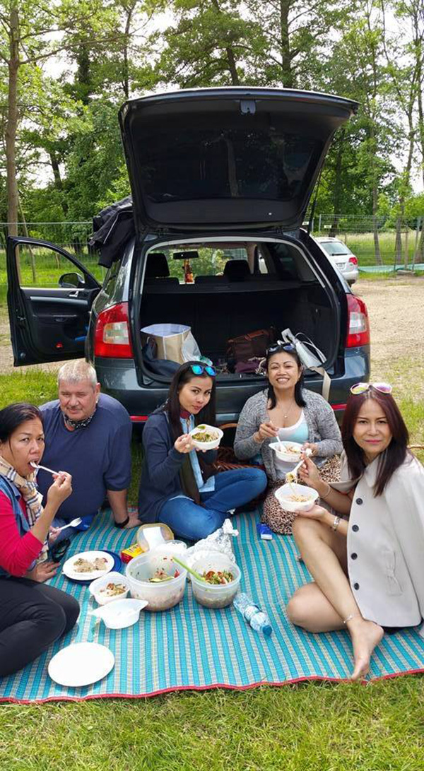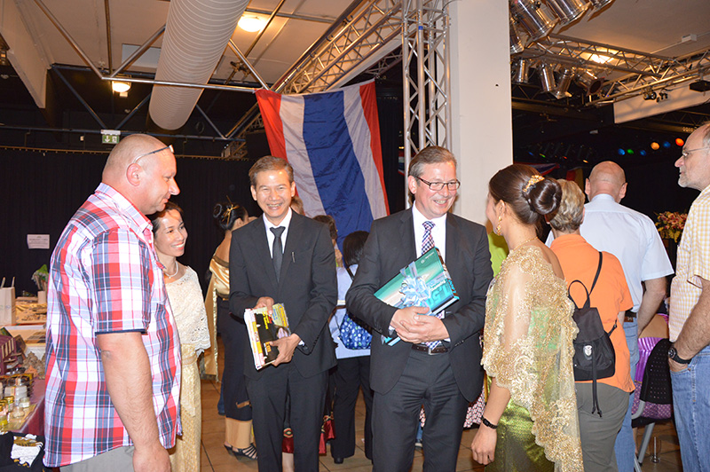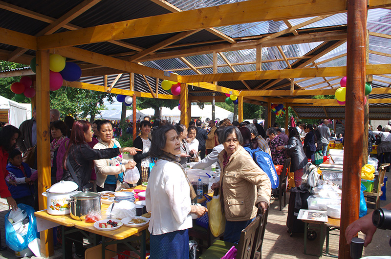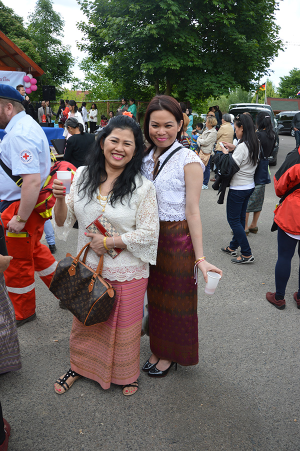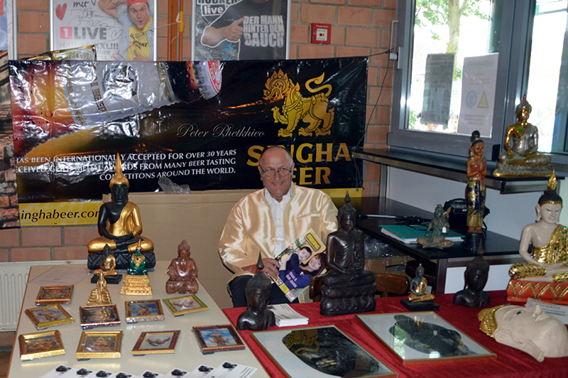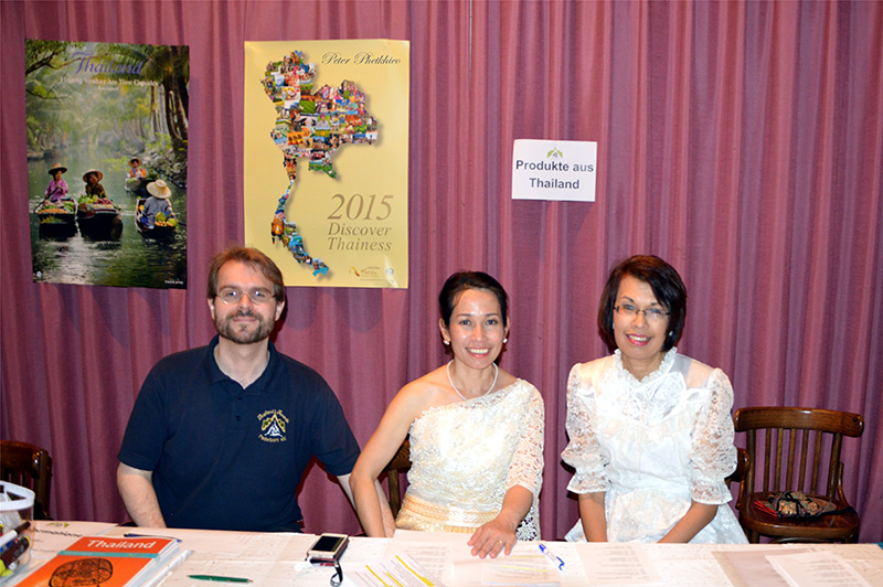 Unter den Ehrengästen befanden sich die Thailändische Botschaft sowie das Auswärtige Amt und der Bürgermeister von Heinersdorf. Alle Gäste waren begeistert von all den schmackhaften Speisen, die man gegen eine kleine Spende in der neu errichteten Garküche verzehren konnte. Kaffee und Kuchen war in Mengen vorhanden, meine geliebte Thüringer Bratwürste gab es bei Bernd und Torsten und die begehrten Nudel-Suppen waren auch vertreten. Händler boten allerlei Sachen aus Thailand an, ganz besonders habe ich mich über Axel aus Celle gefreut. Er brachte das leckere Thai-Eis mit, in das ich mich zuvor in Paderborn (siehe auch den Bericht auf Seiten 21-23) verliebte. Alles in allen ein sehr gelungenes Fest. Peter Phetkhieo