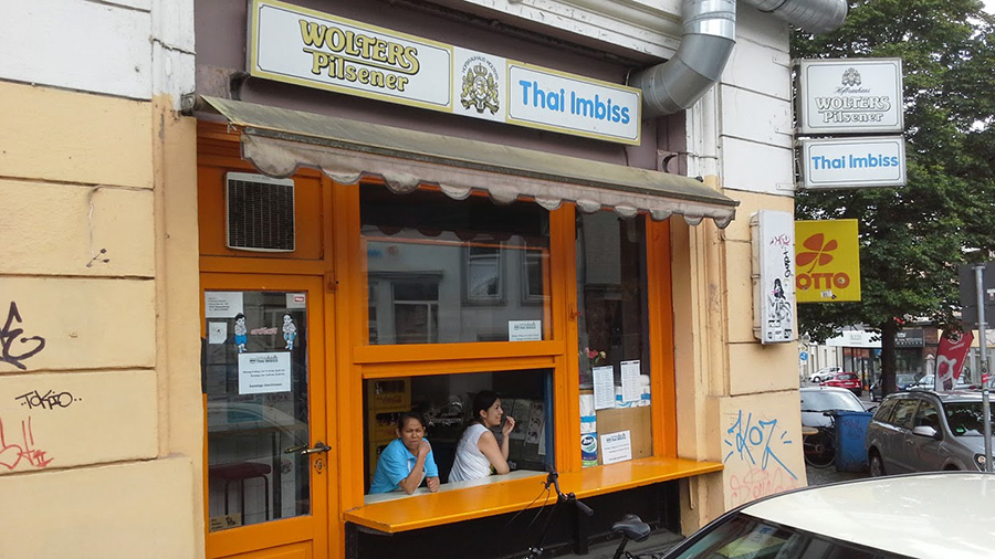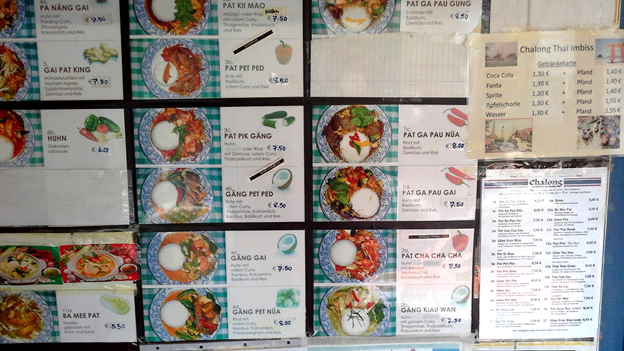 Aber der Reihe nach. Der Chalong Imbiss ist eher klein und unauffällig, hält aber auf jeden Fall, was das Schild verspricht, nämlich Thai Imbiss. An jeder Strassenecke macht ein Asia Imbiss auf, der irgendwie alles von vietnamesisch, thailändisch und chinesisch anbietet, nichts davon wirklich gut.