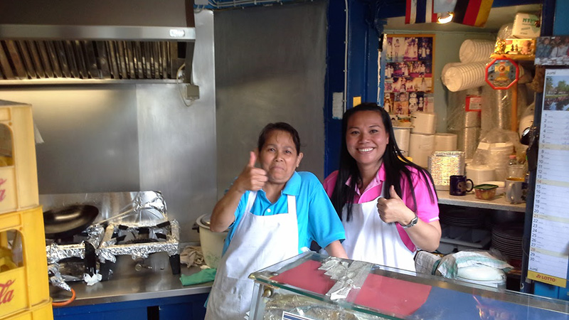 Schade, daß es keine Tische und Stühle draußen auf dem Gehweg gibt, da würde zumindest im Sommer ein echtes Thailand-Gefühl aufkommen.