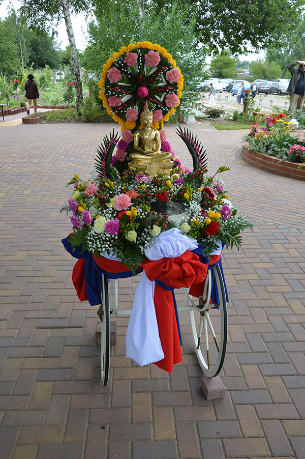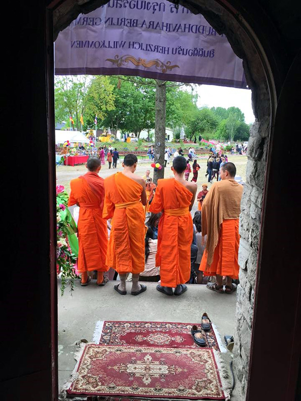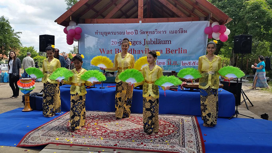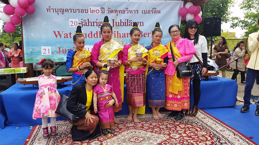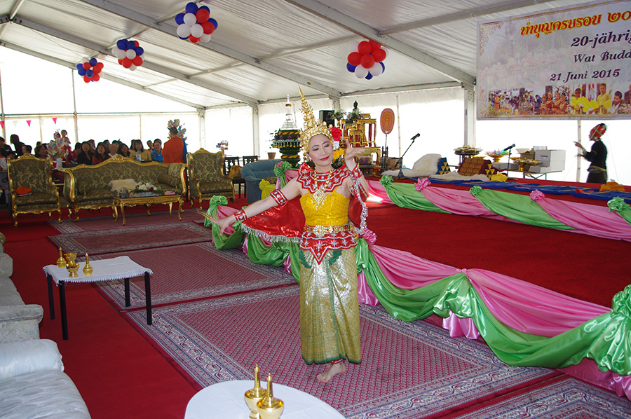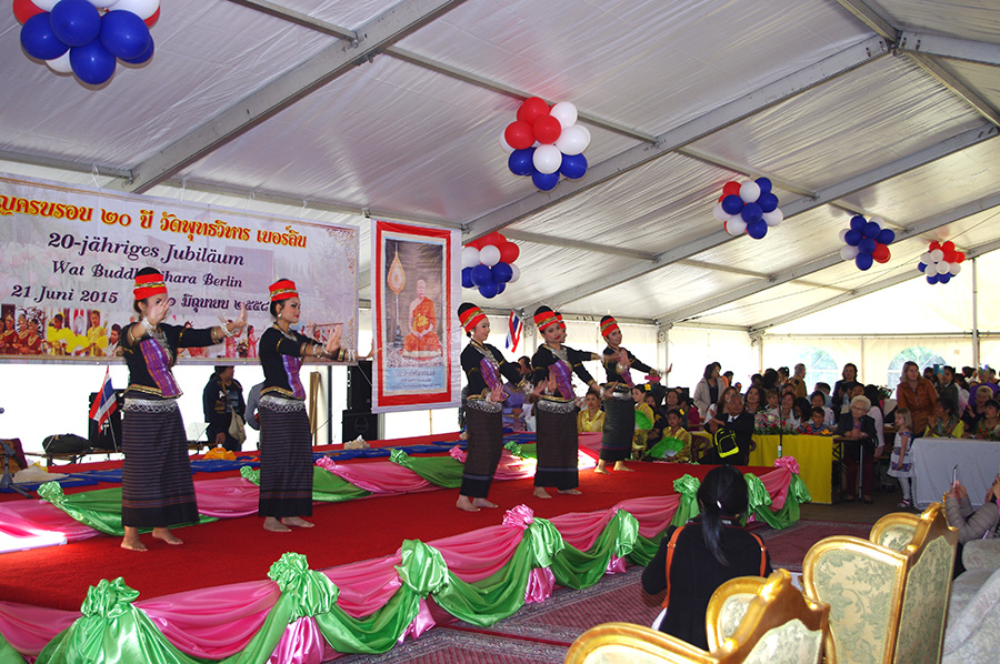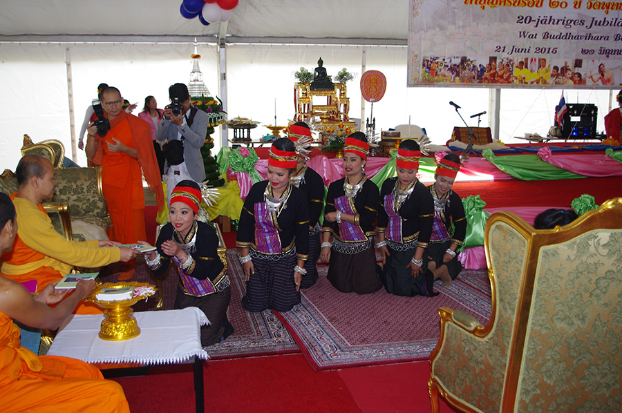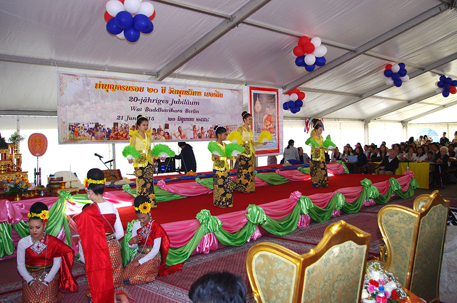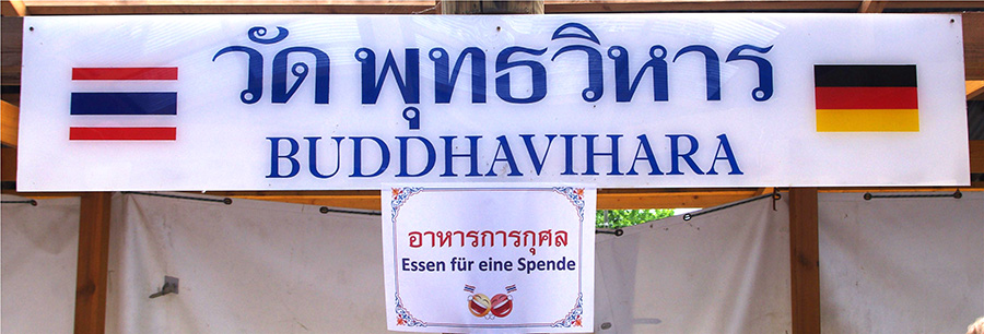 Oh Man(n), wie vergeht doch die Zeit! Unser Wat Buddhavihara feierte am 21. Juni sein 20-jähriges Jubiläum. Viele von Euch, wie auch ich, kennen den Wat schon aus den Anfangszeiten in der Steinmetzstr. in Wittenau. Jetzt in Pankow-Heinersdorf ist zwar alles größer und schöner (auch viele neu angelegte Blumenbeete), doch selbst bei solch einem Jubiläum kommt unser Wat schnell in Platznot. Vom Wat Sangkhavihara aus Stuttgart kamen Mönche und Buddhisten, aus Hannover reiste ein weiterer Bus voller Gäste an. Die vielen Thais aus Berlin und all den anderen Städten - alle kamen um mit dem Wat Buddhavihara ausgiebig zu feiern.
