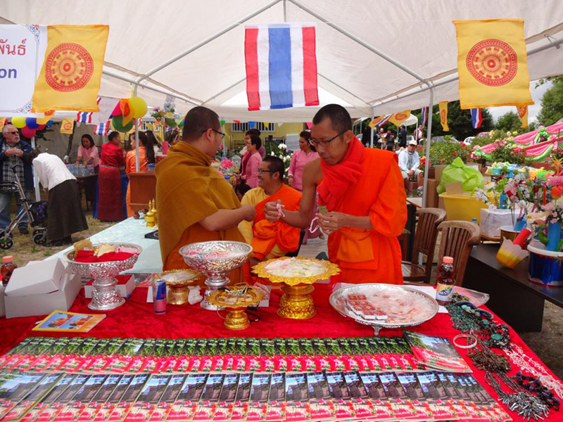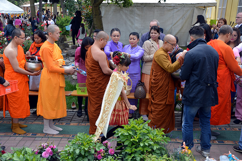 Seit den frühen Morgenstunden wurden Gebets Zeremonien abgehandelt damit der Wat weiter Glück und Segen erhält. Die Hauptzeremonie (der Almosenlauf) fand im Freiem statt, wo die vielen Buddhisten ihre Spenden an die Mönche übergaben. Viele Gäste bestaunten die schönen Kostüme und Trachten, die unsere schönen Thaifrauen trugen, auch mein kleine Natalie hatte sich rausgeputzt. Es war für jeden etwas dabei, ob beim Essen oder einfach nur staunen.