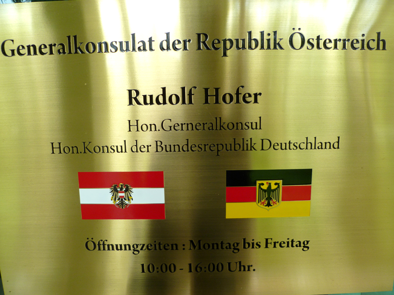 Honorarkonsul der Bundesrepublik Deutschland und Honorar-Generalkonsul Österreichs ist Rudolf Hofer. Zur feierlichen Eröffnungszeremonie am 1.3.2017 begrüßte er u.a. auch den deutschen Botschafter Peter Pruegel und den österreichischen Botschafter Enno Drofenik.