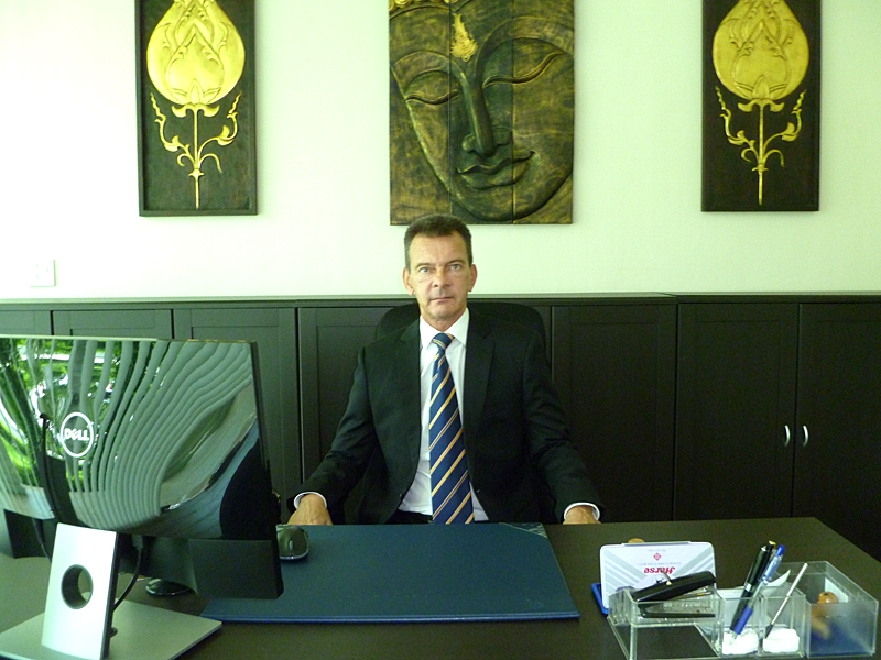 Ein sympathischer Mann von 55 Jahren, der auf uns sofort einen vertrauenswürdigen, kompetent sachlichen Eindruck machte. Geboren ist und wohnhaft war er in Berlin-Falkensee - "Alsoo een echta Balina". Er besitzt sowohl die österreichische wie auch die deutsche Staatsangehörigkeit. Das interessante Gespräch gab uns einen Einblick in seine langjährige Tätigkeit in Thailand seit dem Jahr 2000. Erst war er als Vertrauensmann für beide Botschaften tätig. Doch 2005 wurde er zum österreichischen Honorar-Generalkonsul ernannt und in 2015 auch zum deutschen Honorar-Konsul.