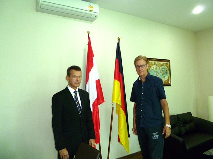 Sa & Bernd von TAF - Thai Asien Flugreisen in Berlin, Kantstraße 59, besuchten im Mai diesen Jahres Honorarkonsul Rudolf Hofer in seinen neuen Räumlichkeiten des österreichischen und deutschen Konsulats in Pattaya.