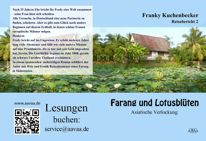 Niedergeschlagen saß er nun in der tropischen Abendsonne auf seinem Motorrad und überlegte: "Was mach ich bloß? Besaufen? - Nee den Blödsinn mach ich nicht noch mal. Das hat mich damals zwei Jahre Führerscheinentzug und 3.000 Euro Strafe gekostet. Das sind die Weiber nicht wert. Weiterreisen nach Kambodscha? Da gibt es schließlich viele hübsche Frauen. Ach Quatsch: Ich fahr in einen Puff, nehme mir eine Lady und mache erst mal wieder richtigen Sex. Morgen werde ich weitersehen." Franky Kuchenbecker