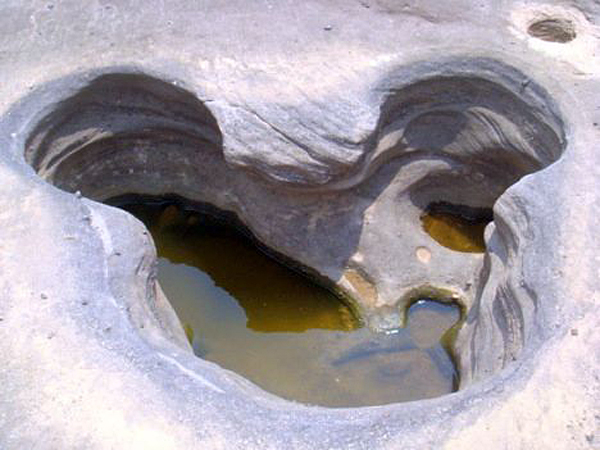 Der Sandstein ist von unterschiedlicher Härte, so daß der Fluß mit Hilfe von immer präsentem Sand mit der Strömung Löcher in den Stein gewaschen hat. Da, wo sich ein Loch einmal gebildet hat, man nennt es Strudelnische, wurde es beim nächsten Hochwasser wieder weiter ausgewaschen, so daß sich die interessantesten Formen ergeben haben.