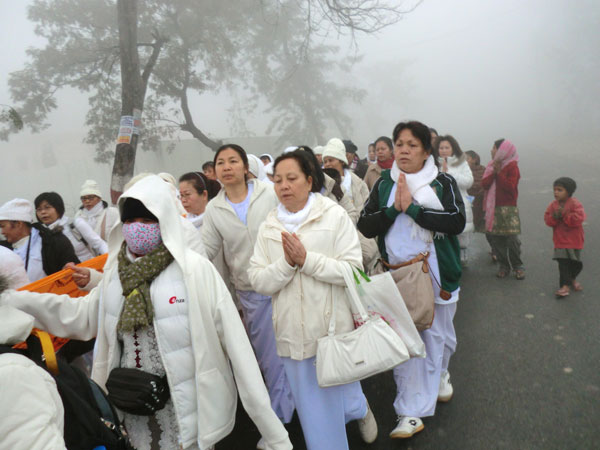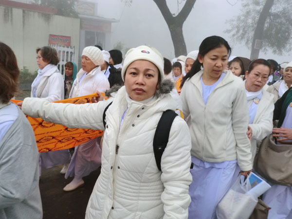 In einem Festzug ziehen die Menschen nun mit Kerzen und ihren selbst gepflückten Blumen durch die Stadt in Richtung des Tempels. Dort finden zum Auftakt traditionelle Tanzvorführungen, Theateraufführungen und Musikdarbietungen statt. Wettbewerbe um die schönsten Kostüme und Kerzen runden das Programm ab. Für die eigentliche Zeremonie sammeln sich die Menschen nachmittags am Fuße des Tempelbergs, um im Spalier stehend die Prozession der Mönche und Novizen zum Tempel empor zu empfangen und ihnen ihre Blumen und Kerzen als Gabenspenden zu überreichen. Oben am Tempel legen die Mönche die Gaben zu Buddhas Ehren im Tempel nieder. Zum Abschluss der Zeremonie gießen die Menschen Wasser über die Füße der Mönche, mit dieser symbolischen Geste sollen die Sünden der Gläubigen weggespült werden. TAT