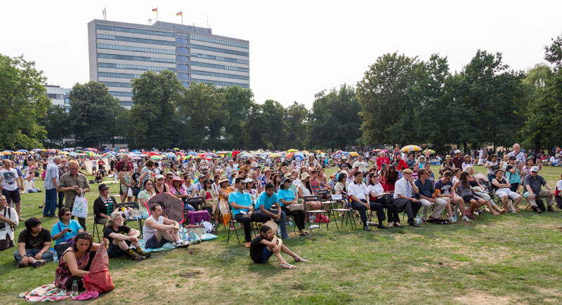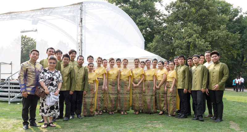 Es war am 20. Juli richtig heiss in Berlin. Trotzdem wurde das Konzert des thailändischen Chores SUANPLU CHORUS ein voller Erfolg. Veranstalter war die Königlich Thailändische Botschaft in Berlin, wieder in Kooperation mit dem Bezirk Charlottenburg-Wilmersdorf. Es war ja nicht das erste offizielle Thai-Konzert bzw. Fest im Preußenpark, den wir liebevoll Thai-Park nennen.