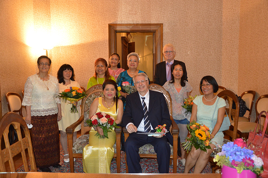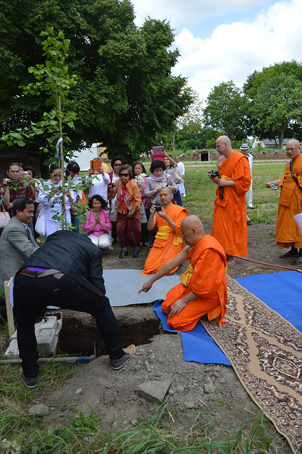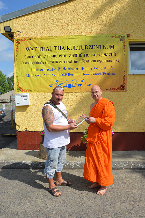Die angereisten Mönche überbrachten Glückwünsche und überreichten die gesammelten Spenden. Gemeinsam haben die Mönchen unter Gebets Gesängen verschiedene seltene Bäume auf dem Grundstück des Pankower Tempels gepflanzt, die dem Wat Glück bringen sollen, darunter auch mehrere recht seltene Ginkgo Biloba. Das ist eine sehr alte Baumart, die heute als ein Sinnbild der Freundschaft gilt und gegen das Vergessen wirkt. Nach der Zeremonie der Bepflanzung wurde ich von meinem Freund Santuttho mit etwas ganz besonderem überrascht - er schenke mir sein gerade erschienenes Buch "Der kleine Buddhamönch", in dem er seine Sicht auf die Geschichte des Buddhismus niederschrieb. Ich fühlte mich geehrt und sage Danke! Peter Phetkhieo