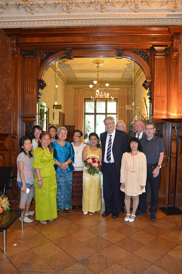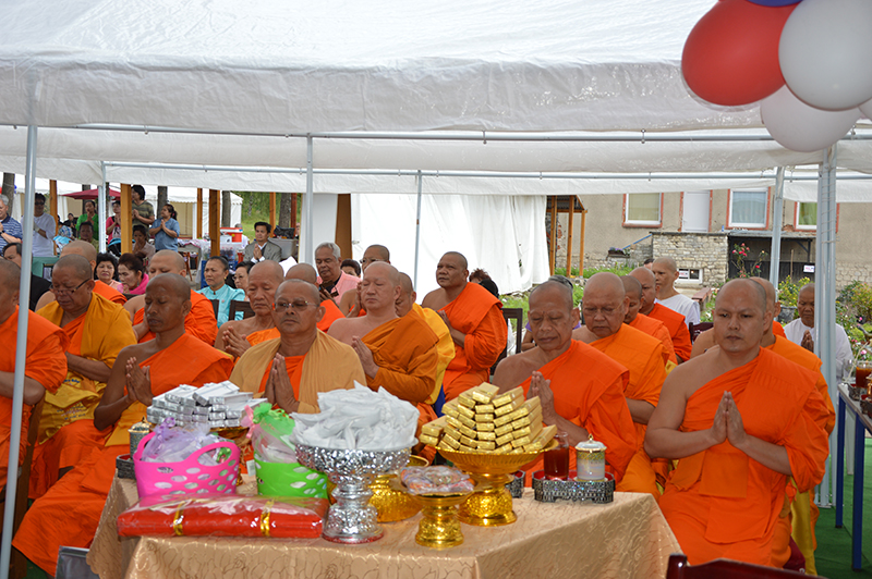 Dass es in einem Wat einige Mönche gibt, das ist ja klar, aber dass der gesamte Zeremonie Saal in leuchtendem Orange erstrahlt das habe auch ich noch nicht gesehen. Mehr als 50 Mönche aus Thailand und aus vielen Länder Europas trafen sich am 30. Juni um gemeinsam Gebete und den Segen für unseren Wat Buddhavihara in Berlin zu absolvieren.