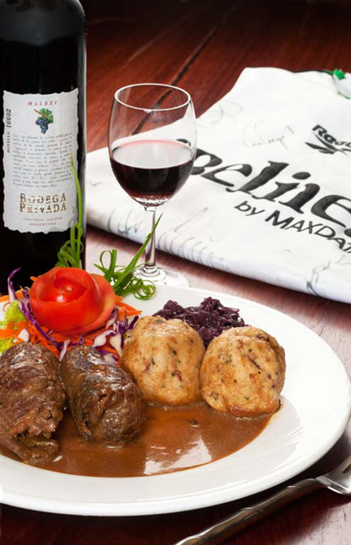 - hausgemachte Rinderrouladen mit Klößen und Rotkohl