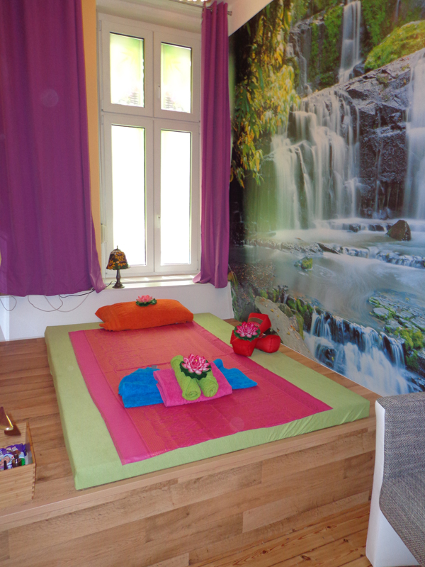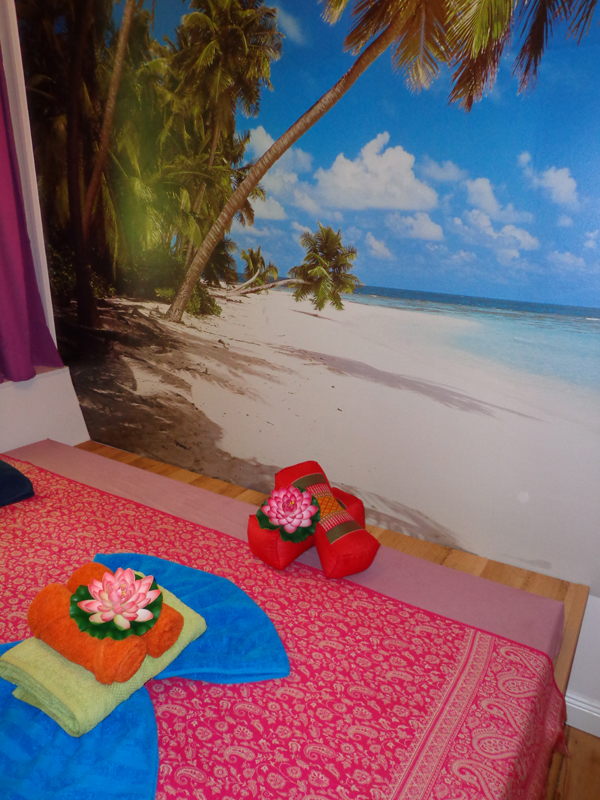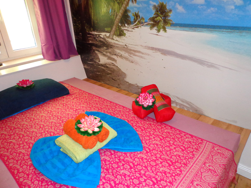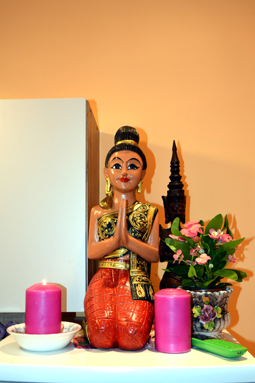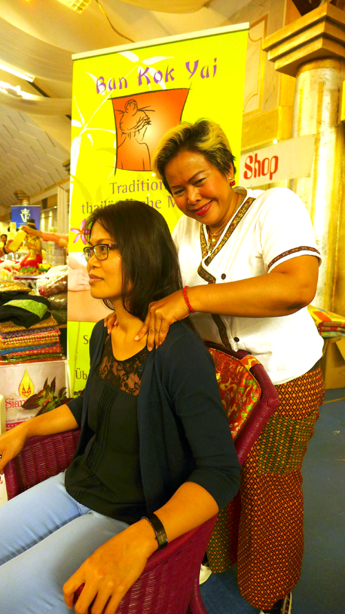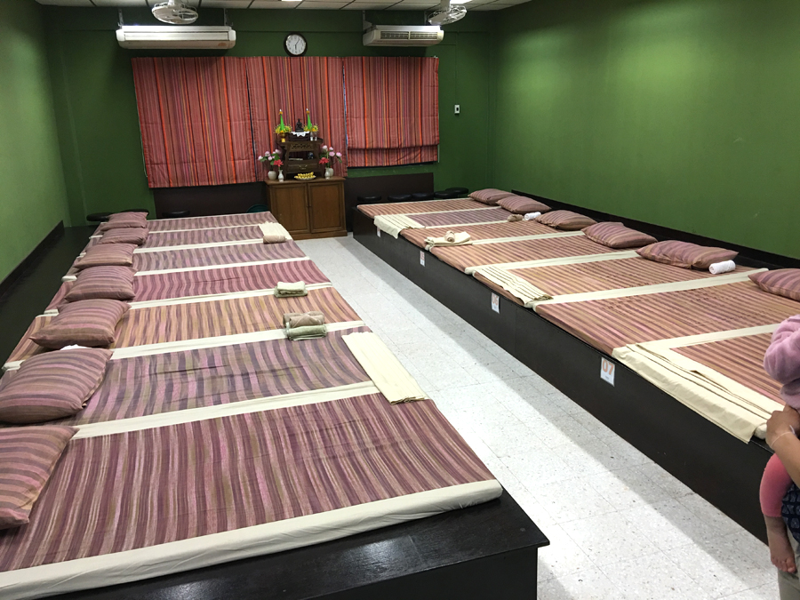 In Chiang Mai angekommen ist unsere erste Station die östliche Vorstadt San Kamphaeng. Hier ist auf einem weitläufigen Regierungsgelände der Campus der DSD Wellness Akademie mit ihren vielen Gebäuden angesiedelt. Diese Einrichtung des thailändischen Arbeitsministeriums bildet viele Masseurinnen aus. Es gibt Unterkünfte für Schüler und Lehrer, Kantine, Bürogebäude, Meditationsgärten, mehrere Trakte mit Schulungs- und Vorlesungsräumen sowie ein komplett eingerichtetes Übungs-Spa von bestimmt 400 Quadratmeter, wo die Schüler unter echten Spa-Bedingungen das erlernte Wissen anwenden können.