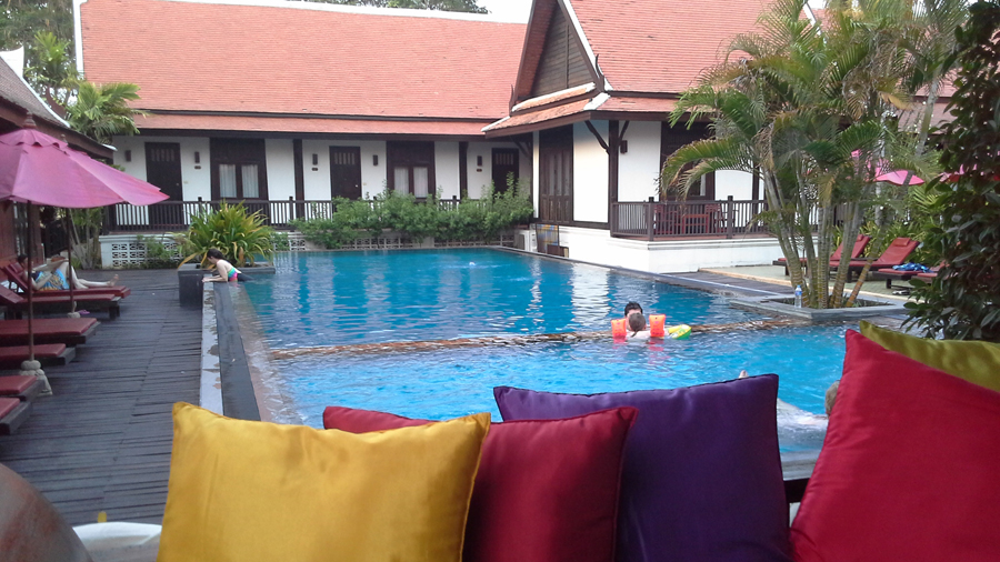 Nach mehrstündiger Fahrt von Kanchanaburi über Phitsanulok, das Thermometer zeigte daselbst 42°C im Schatten an, war der Pool die größte Attraktion im Hotel, wenngleich das Wasser gefühlte Badewannentemperatur hatte. Die Handtücher wurden kostenlos bereitgestellt, so daß wir den Tag auf sehr angenehme Weise ausklingen lassen konnten.