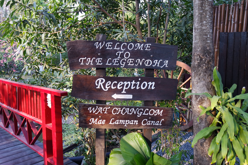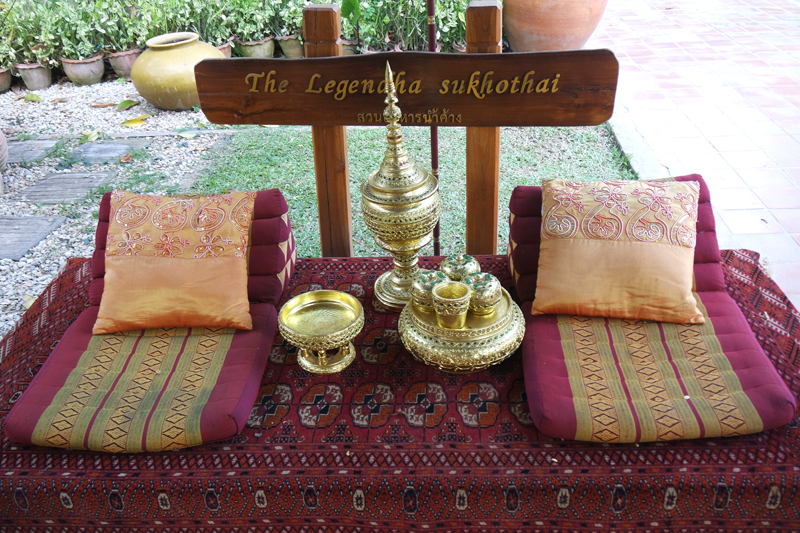 Das Hotel Legendha Sukhothai, die Bezeichnung ist ein Kunstwort, das sich nicht wirklich übersetzen läßt, ist ein Haus der gehobenen Mittelklasse direkt am Historical Park mit den über 200 Ruinen. Es liegt etwas außerhalb der heutigen Stadt Sukhothai, darum aber um so ruhiger. Alle Zimmer im Bungalow-Stil befinden sich ebenerdig und sind um den großen Pool herum gruppiert. Das ganze Haus und die Außenanlagen sind sehr gepflegt und geschmackvoll im Thai-Stil dekoriert, abends wird die Anlage dezent beleuchtet.