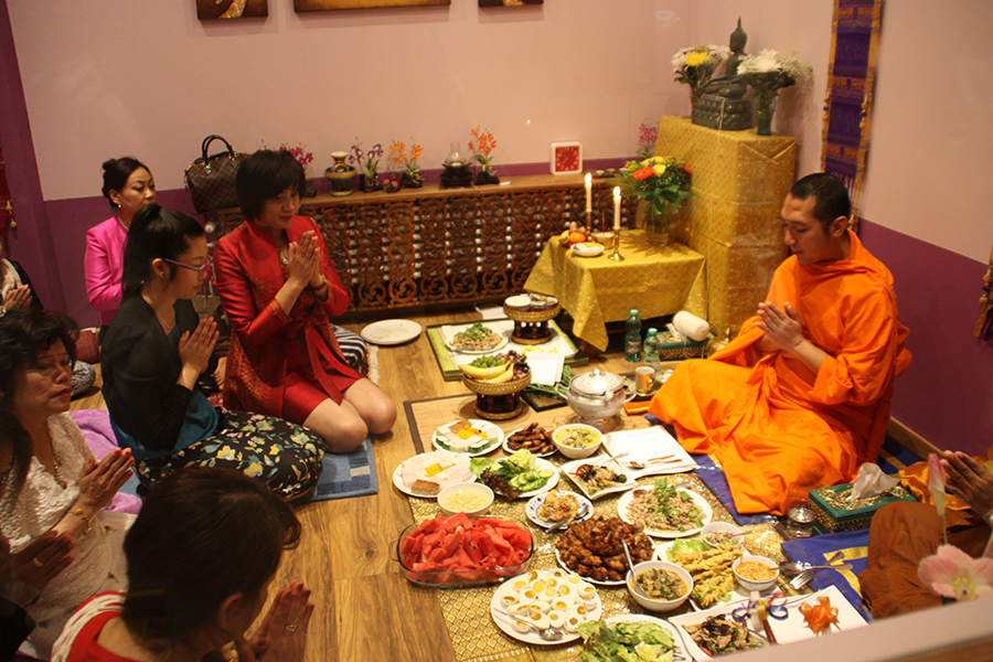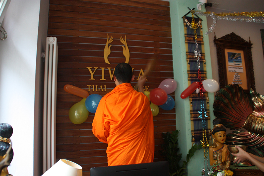 Diese neue Thaimassage ist ganz sicher eine der schönsten in der Hauptstadt. Nahe der Charité gelegen und unweit des Regierungsviertels, und zwar in der Reinhardtstrasse 47, direkt am Karlsplatz, eröffnete die YIWHA Thaimassage am 31. August mit einer buddhistischen Zeremonie. Es kamen zwei Mönche und viele Nonnen aus dem Wat Buddhavihara in Berlin-Pankow. Auch Dimmy und zwei weitere Thaitänzerinnen gaben dem Anlass die entsprechende Festlichkeit.